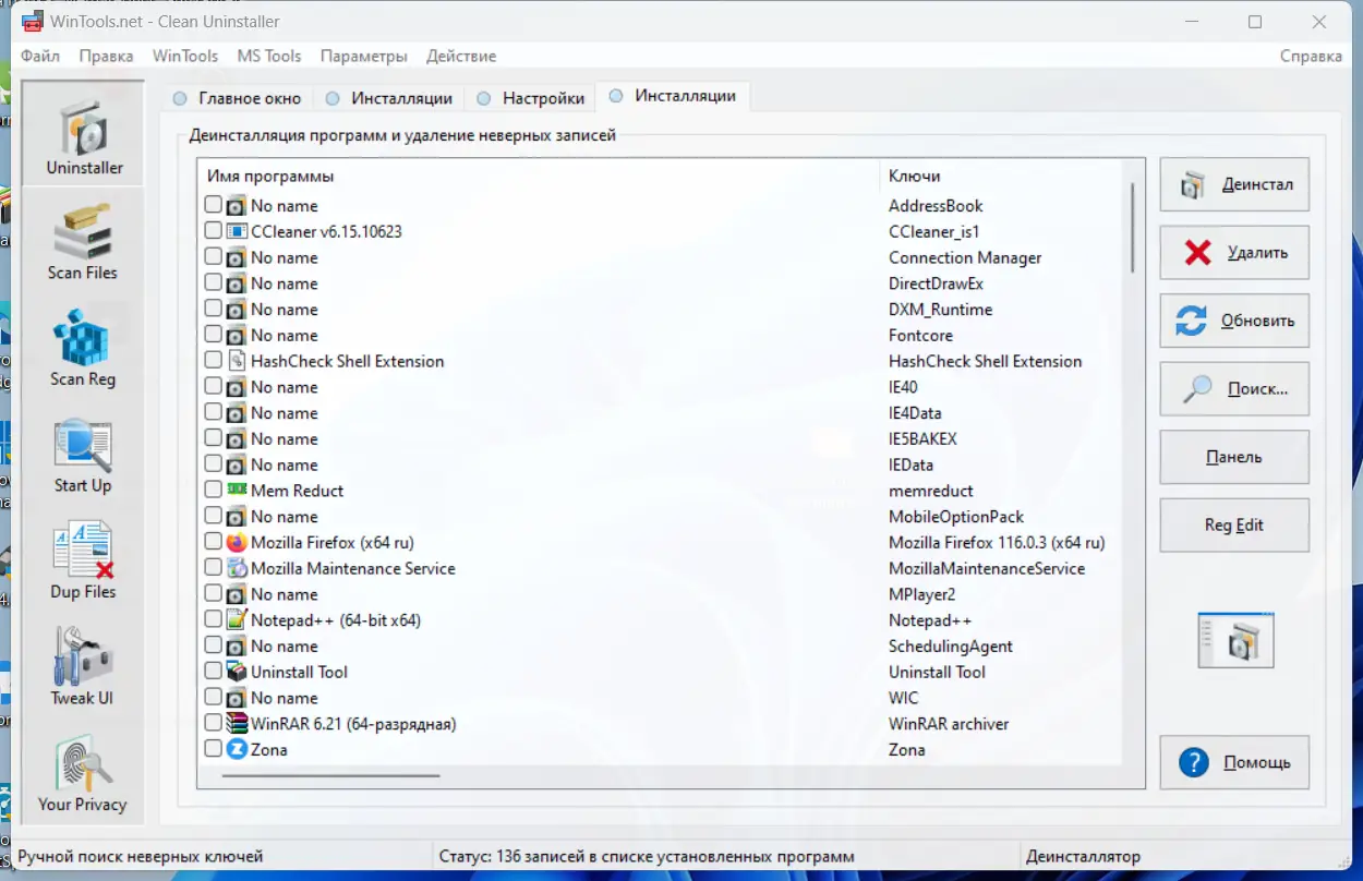 При деинсталляции различных программ часто на жестком диске остаются временные файлы и некорректные записи в реестре, которые занимают дисковое пространство и замедляют работу системы. В этом помогает инструмент «Clean Uninstaller», позволяющий полностью удалять программы и контролировать процесс их установки, а также отслеживать изменения в файлах и реестре в ходе установки и удаления программ.