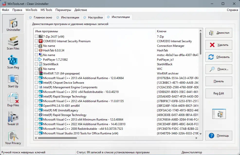 - Полное удаление нежелательных программ и «мертвых» ссылок реестра с помощью утилиты для деинсталляции;