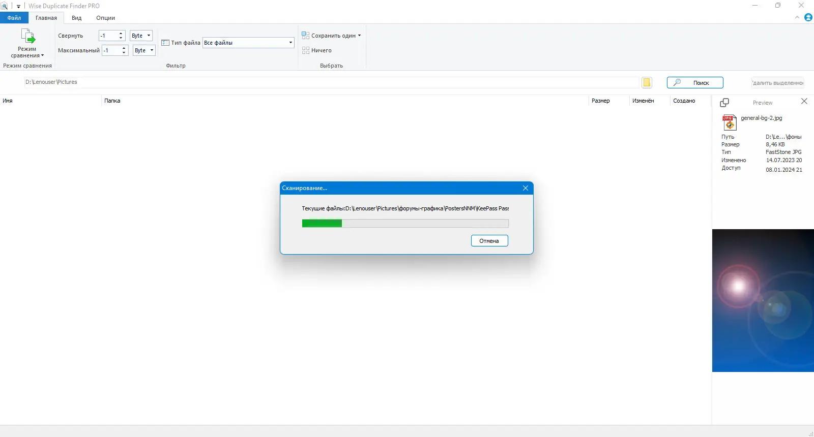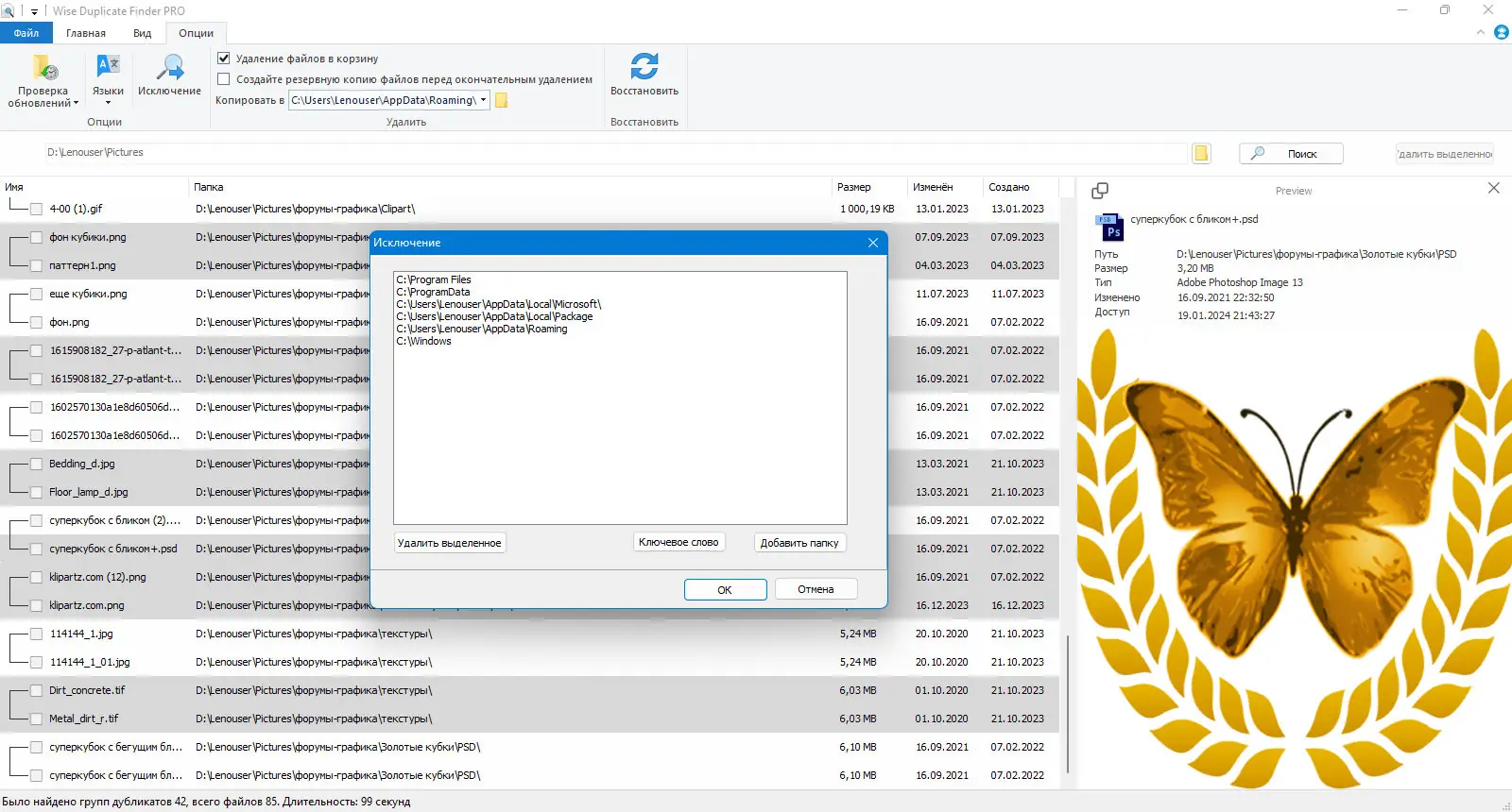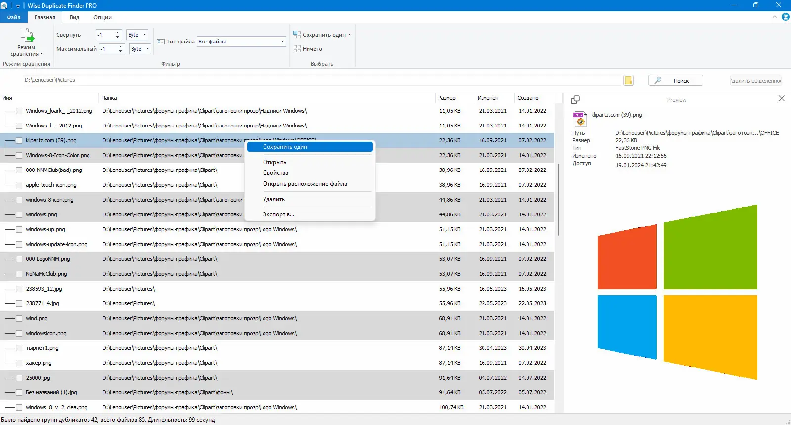 - Выбор типа дубликатов для более точного поиска