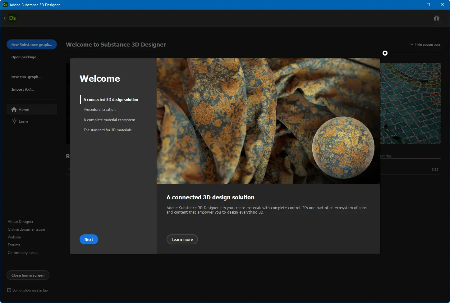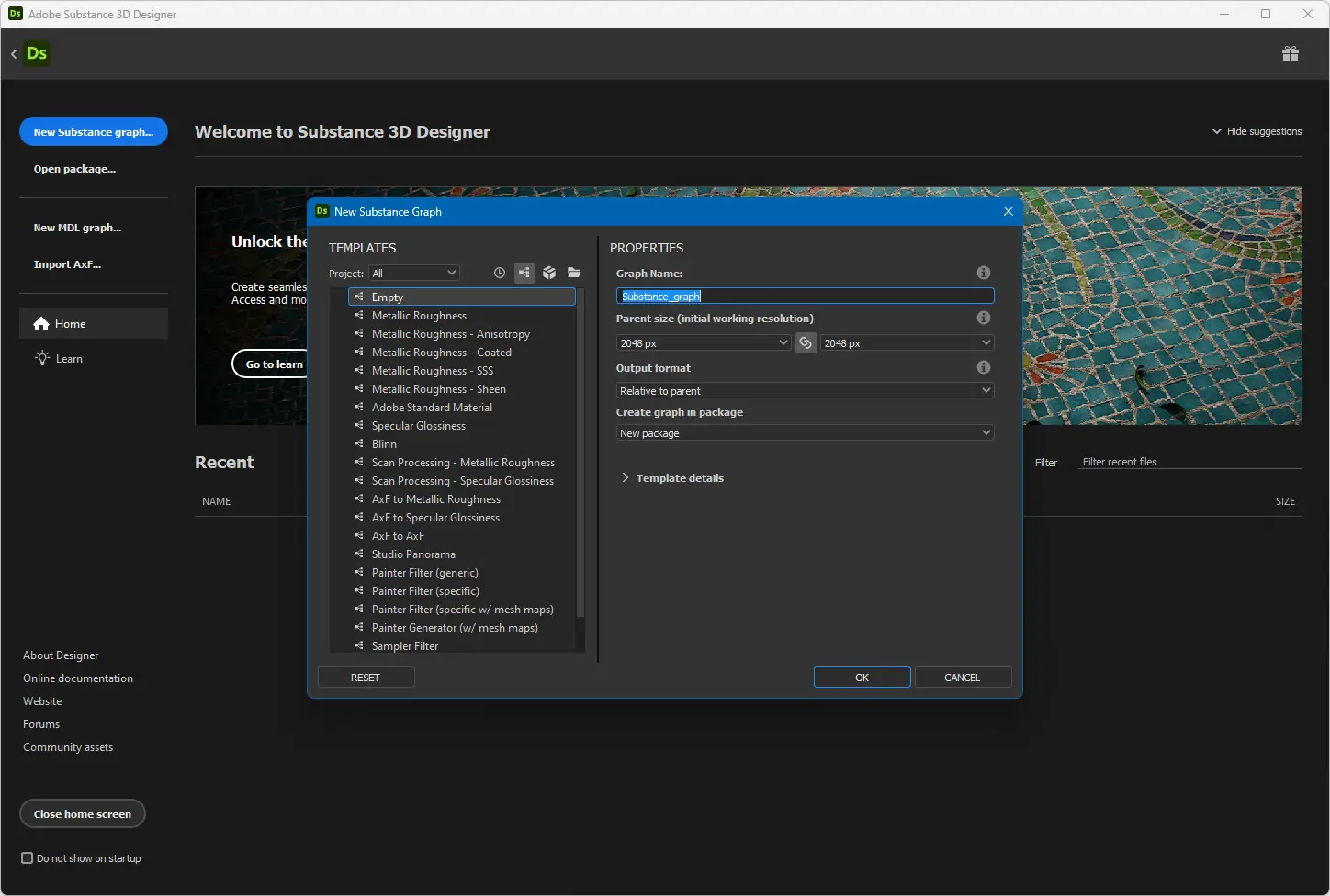 - Запустить файл Adobe Substance 3D Designer для начала работы.