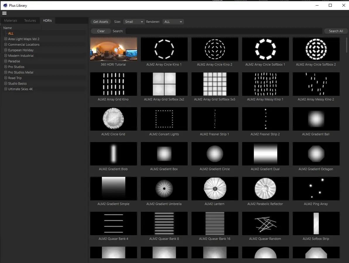 - Библиотеки HDRI для освещения и фона, сцены и студийные комплекты