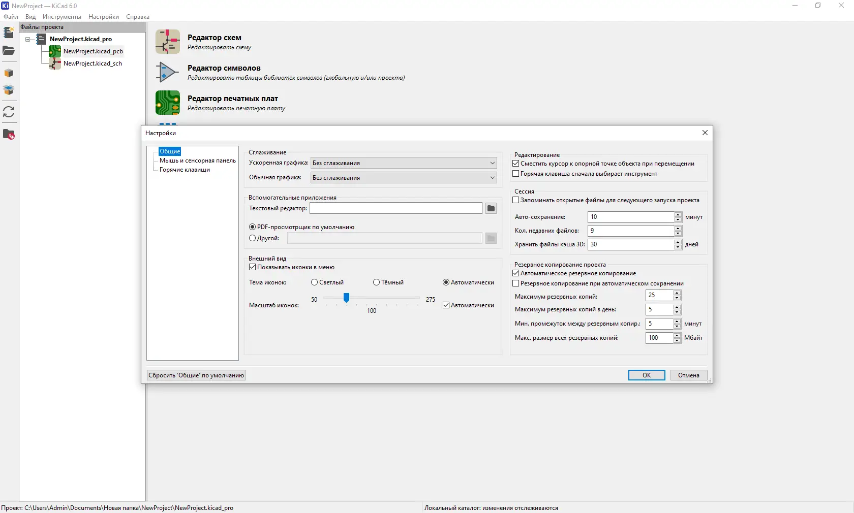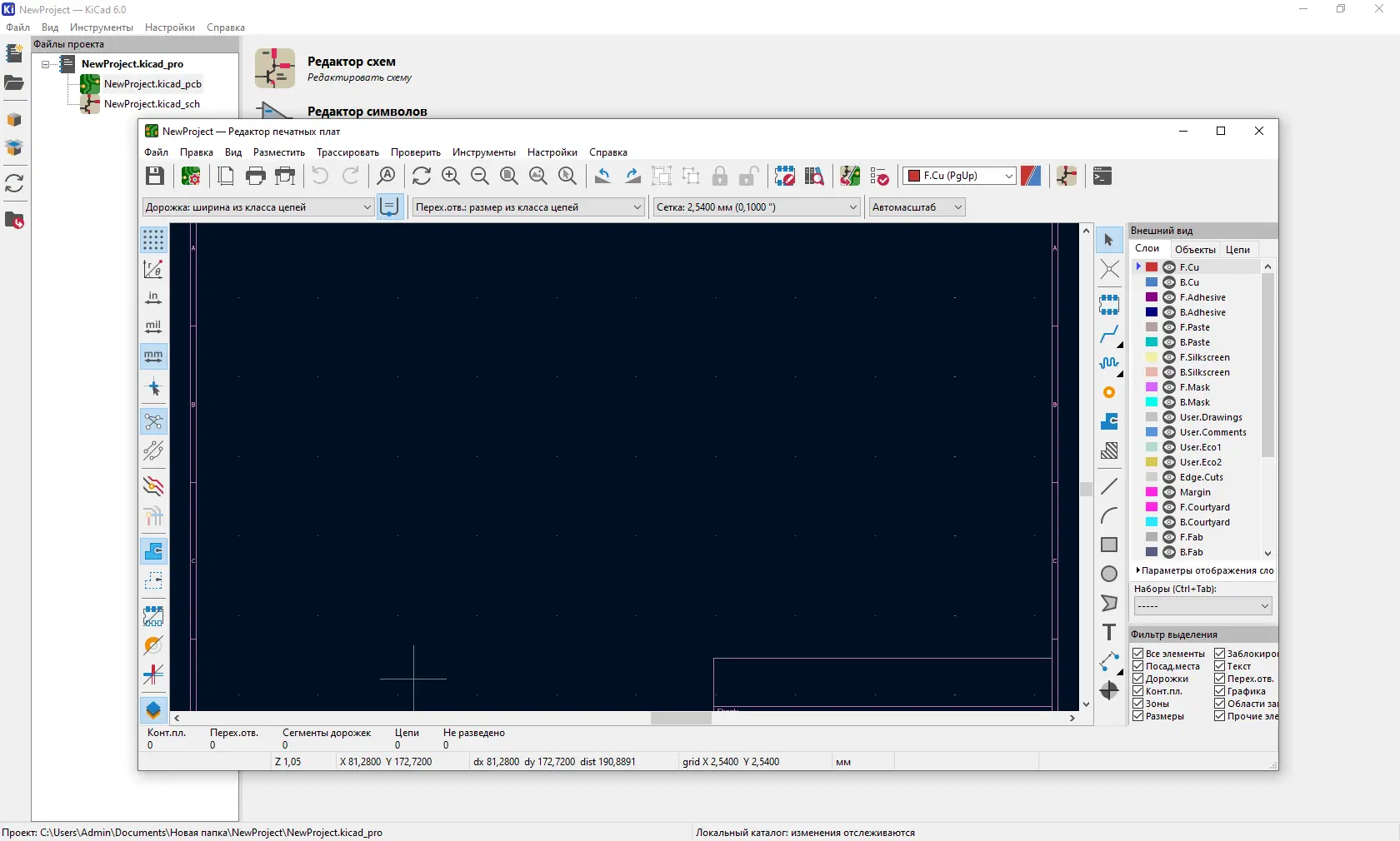 - Редактор для настройки и редактирования печатных плат (pcbnew)