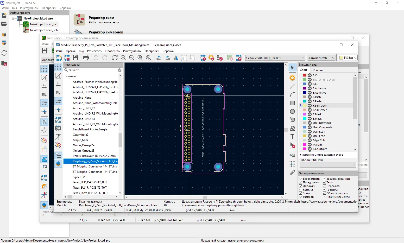 - Интегрированный модуль выбора посадочных мест (cvpcb)