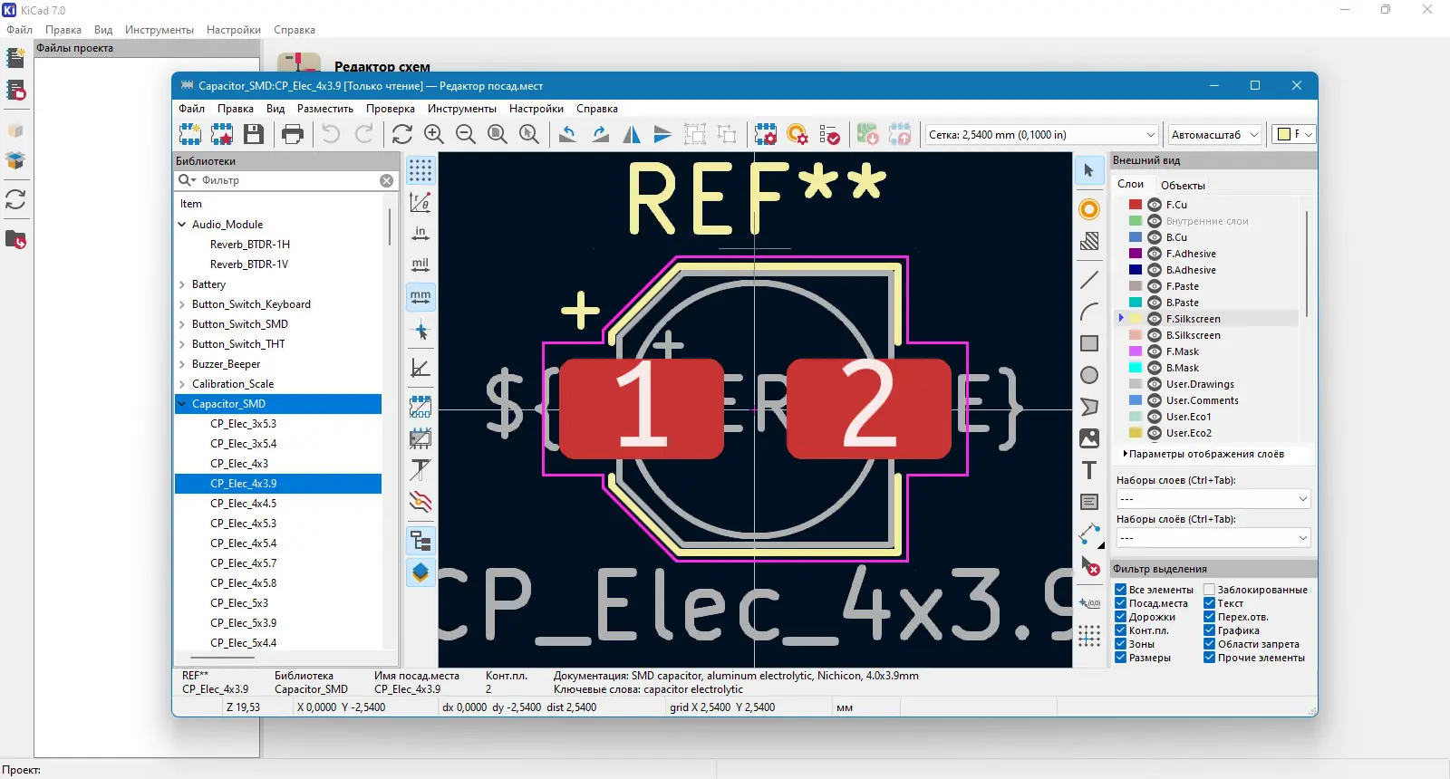- Инструмент для выбора посадочных мест на плате — cvpcb.