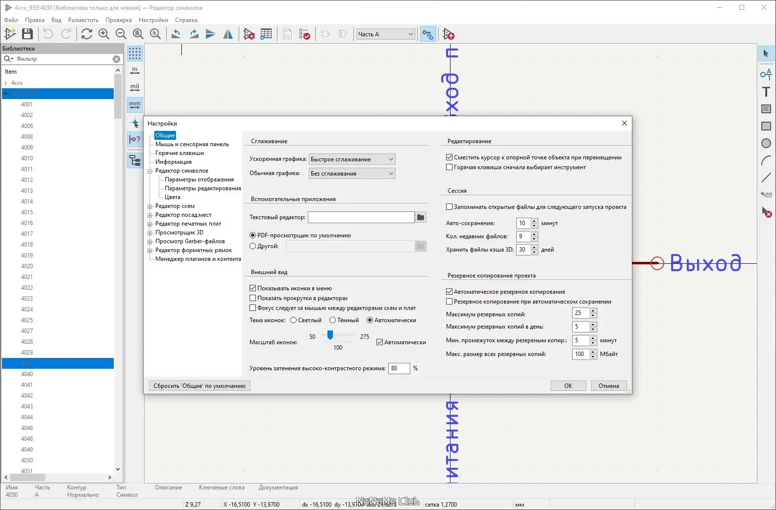 - Редактор схем — eeschema — для создания и редактирования принципиальных схем.