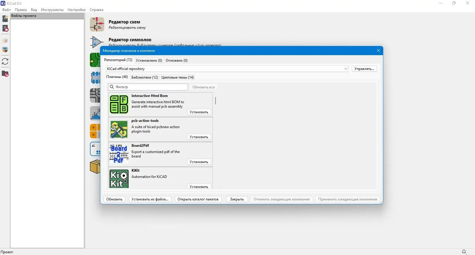 - Редактор схем – eeschema для создания и редактирования принципиальных схем.