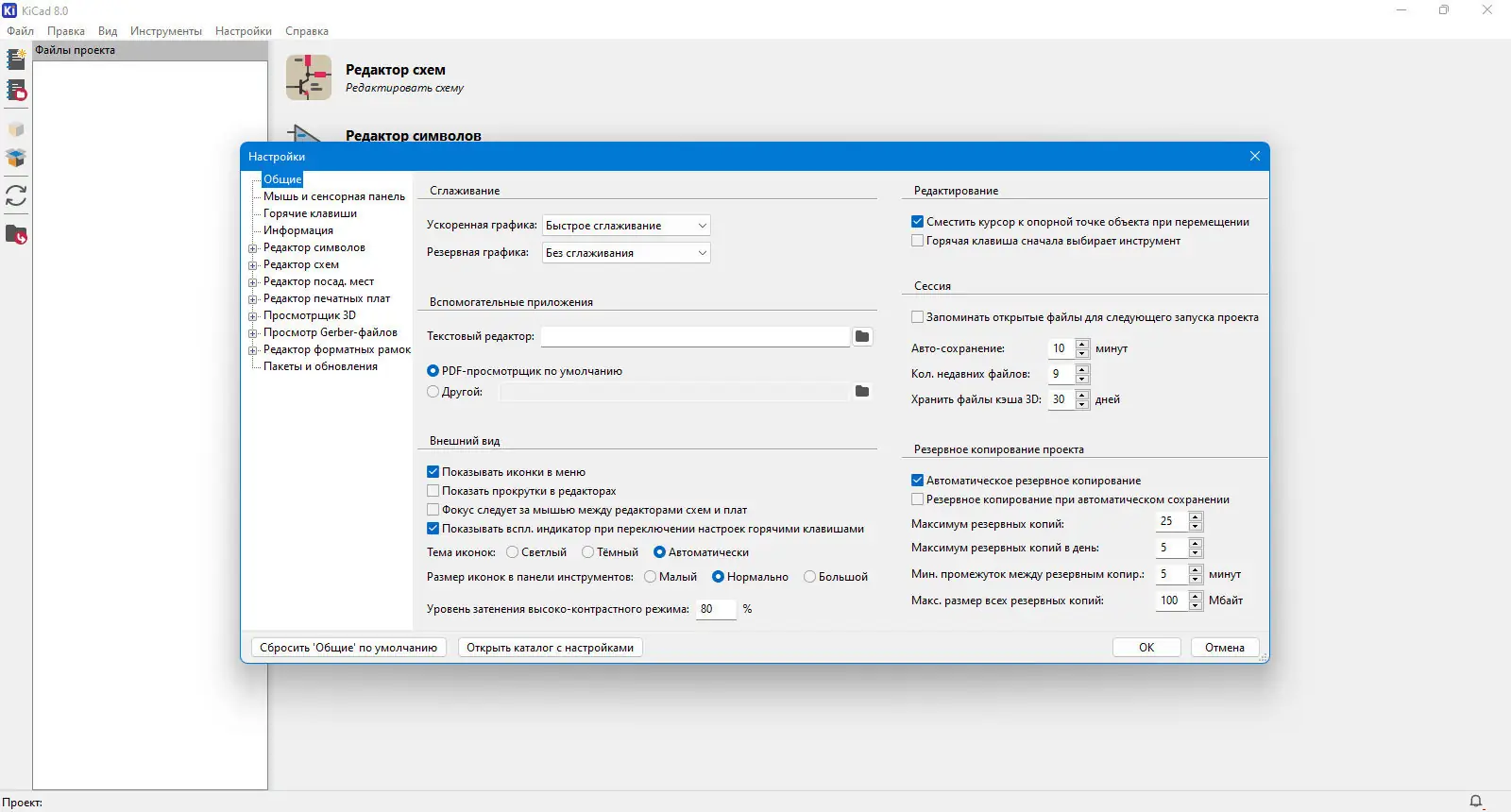 - Редактор схем — eeschema, обеспечивает создание и редактирование принципиальных схем.