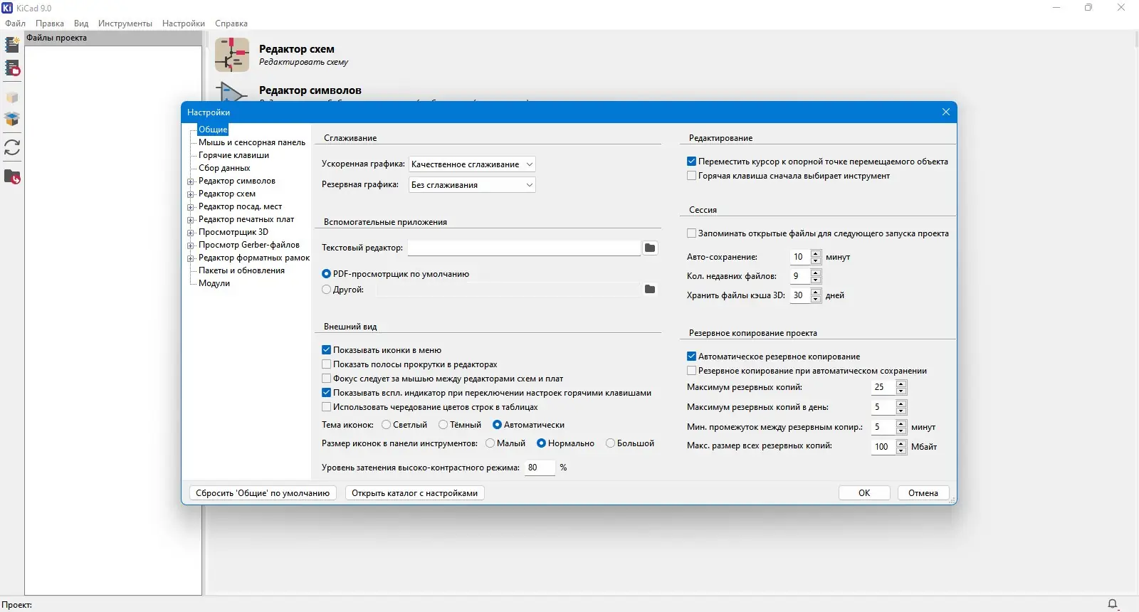 - Редактор схем — eeschema, с широкими возможностями для проектирования и редактирования электронных схем.