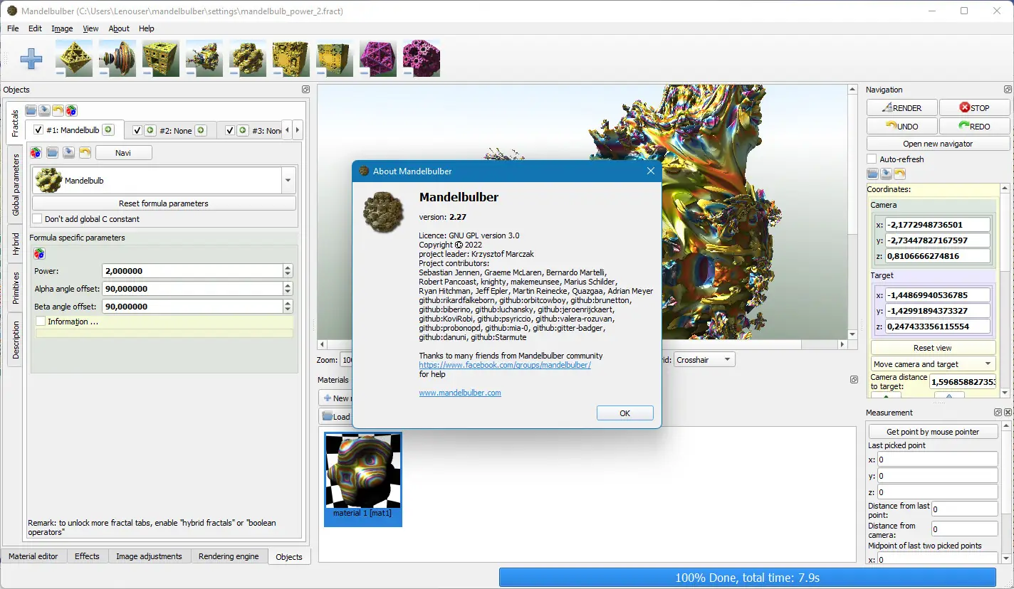 Это экспериментальное приложение предназначено для создания визуально впечатляющих 3D-фракталов с использованием различных математических моделей и алгоритмов. Благодаря поддержке освещения, теней, цветовых эффектов и эффектов ambient occlusion, оно предоставляет уникальные инструменты для генерации реалистичных и сюрреалистичных изображений. Программа обладает простым в использовании 3D-навигатором, позволяющим легко исследовать и редактировать сложные структуры. Mandelbulber позволяет исследовать тригонометрические, гиперкомплексные, Mandelbox, IFS и многие другие виды трёхмерных фракталов, создавая портфолио потрясающих изображений и видео. Программа подходит для профессиональных художников, исследователей и любителей, желающих открыть новые горизонты в мире фракталов.