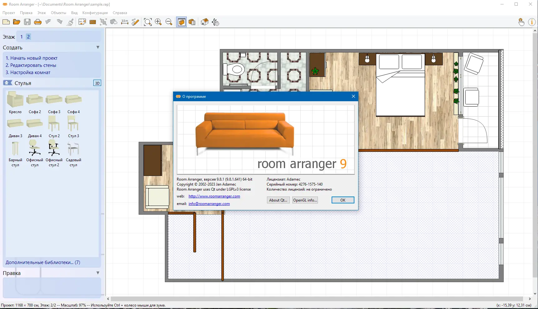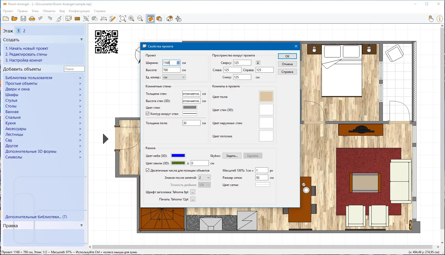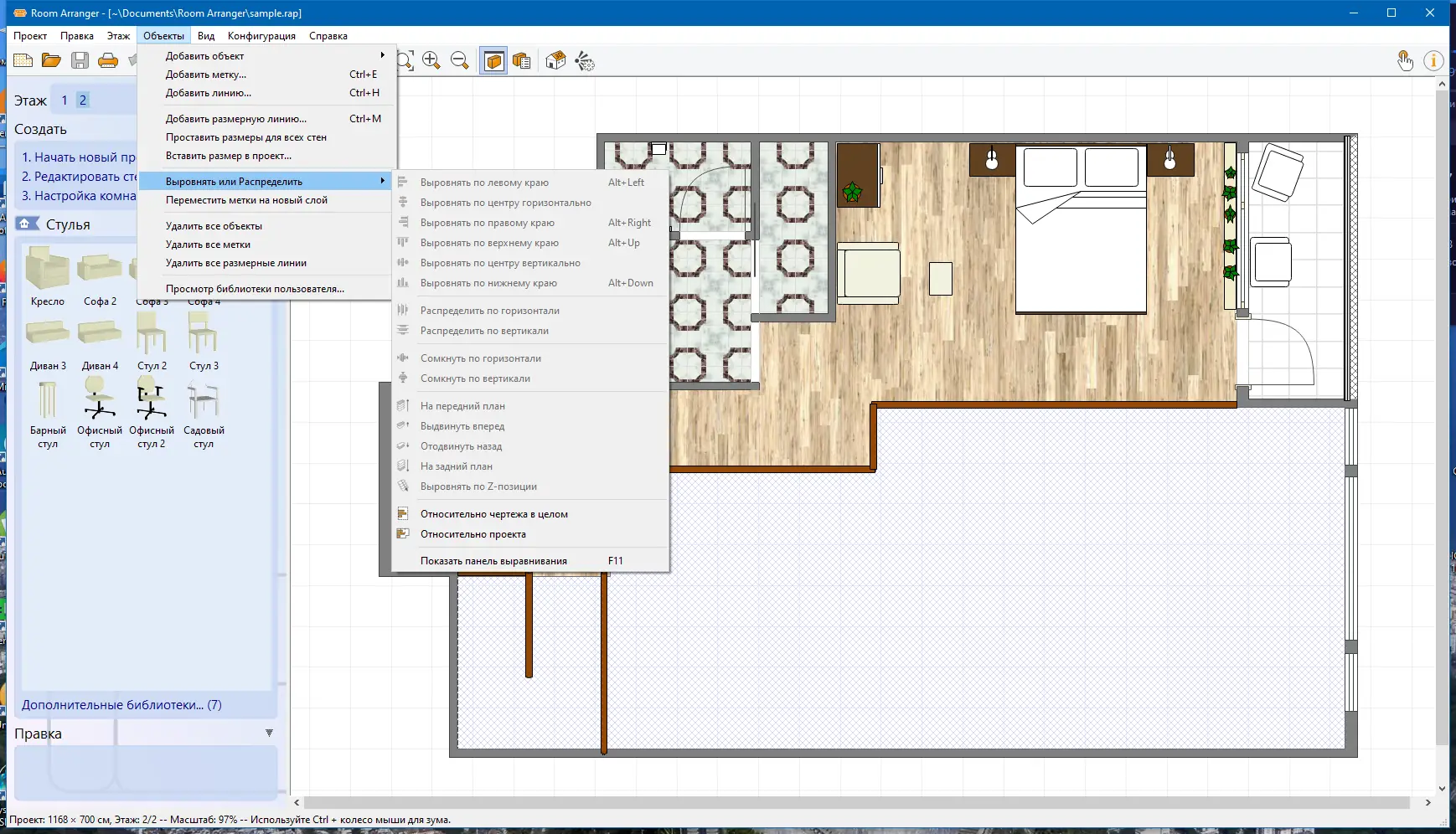 Room Arranger — это специализированное программное обеспечение, предназначенное для создания, анализа и редактирования интерьеров помещений. Она будет реально полезна, если вы решили перенести стены, осуществить перепланировку или просто изменить размещение мебели. Благодаря интегрированной визуализации в 3D вы сможете наглядно увидеть конечный результат и внести необходимые корректировки. В программе легко перемещать, вращать, менять размеры и цвет предметов интерьера, а также создавать уникальные элементы, которых нет в стандартной библиотеке. После завершения дизайна вы можете просмотреть проект в 3D, подготовить интерактивные чертежи и распечатать план в нужном масштабе.