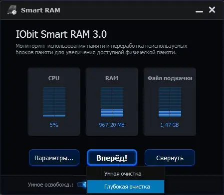 Программа IObit Smart RAM предназначена для мониторинга и оптимизации оперативной памяти компьютера, обеспечивая более эффективное использование ресурсов системы и повышая её производительность.