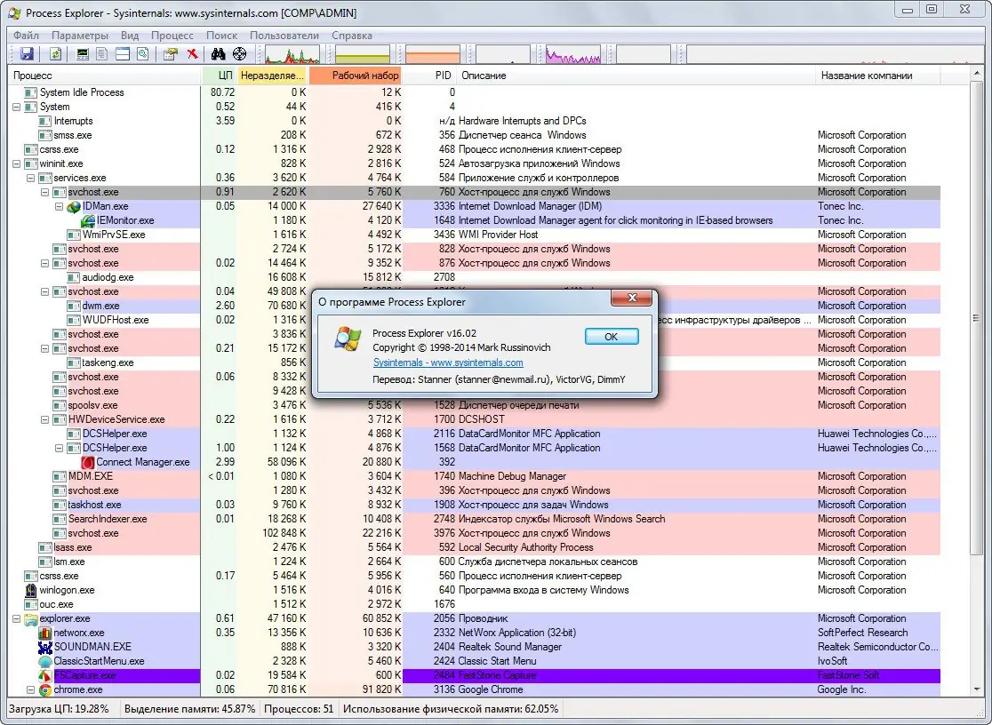 Process Explorer представляет собой универсальный инструмент для анализа работы операционной системы Windows. Он позволяет отслеживать активные процессы, видоизменять их приоритеты, управлять потоками и даже «замораживать» отдельные приложения. Основное преимущество – способность выводить подробную информацию о владельце процесса, использование памяти и задействованные библиотеки DLL, что существенно упрощает диагностику.Также, благодаря функциям поиска, легко определить, у какого процесса открыт определенный дескриптор или загружена нужная DLL. Уникальные возможности программы делают её незаменимой для устранения неполадок и понимания функционирования Windows, а её портативная версия подходит для использования без установки.
