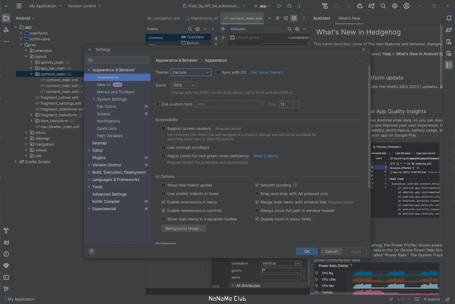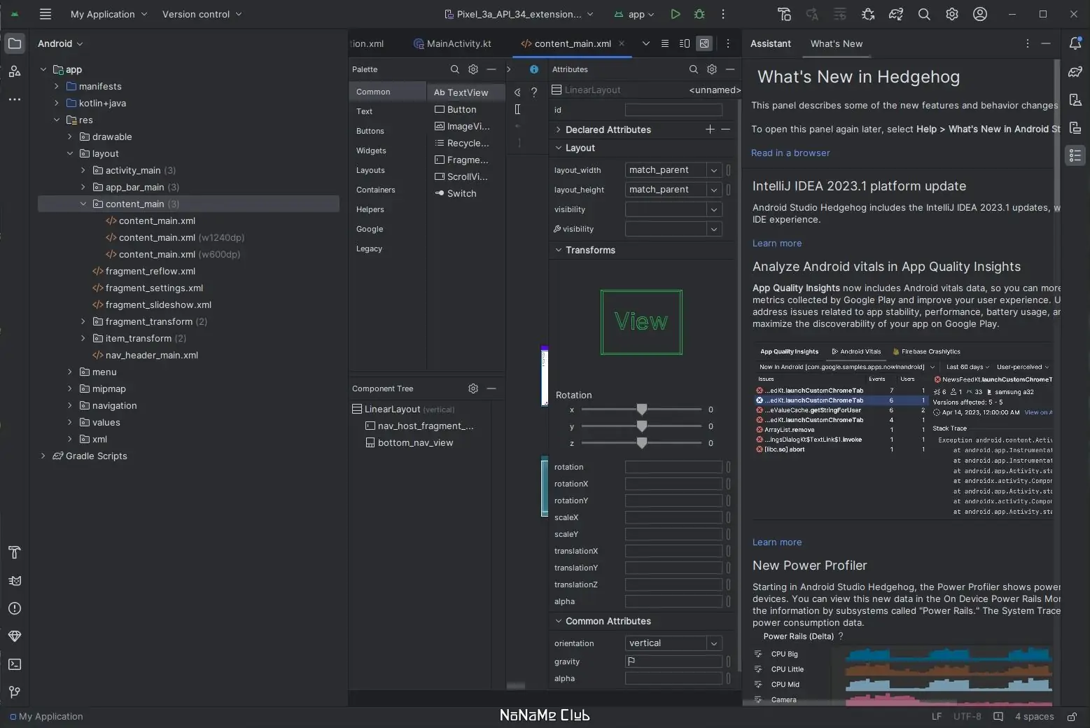 - Визуальный редактор разметки с поддержкой ConstraintLayout для создания сложных макетов