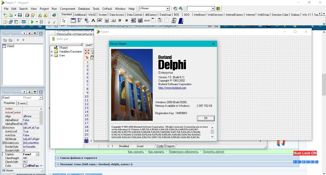 Delphi 7 — одна из самых известных и востребованных систем разработки от компании Borland, предназначенная для создания программ как для начинающих, так и для профессиональных разработчиков. Предлагает мощную среду для быстрого написания качественного программного обеспечения, обладая богатым набором инструментов и компонент.