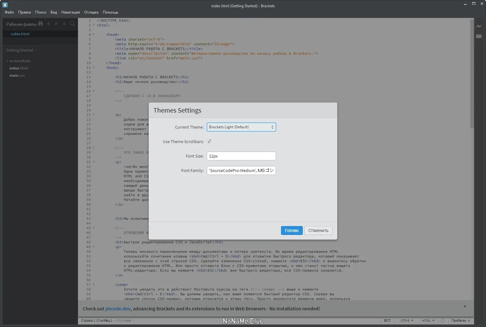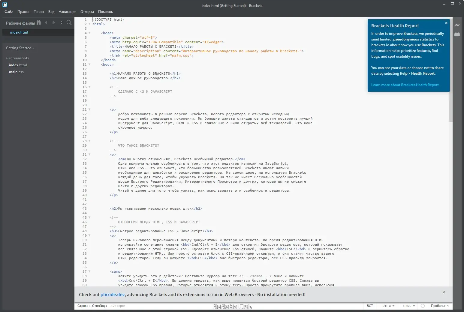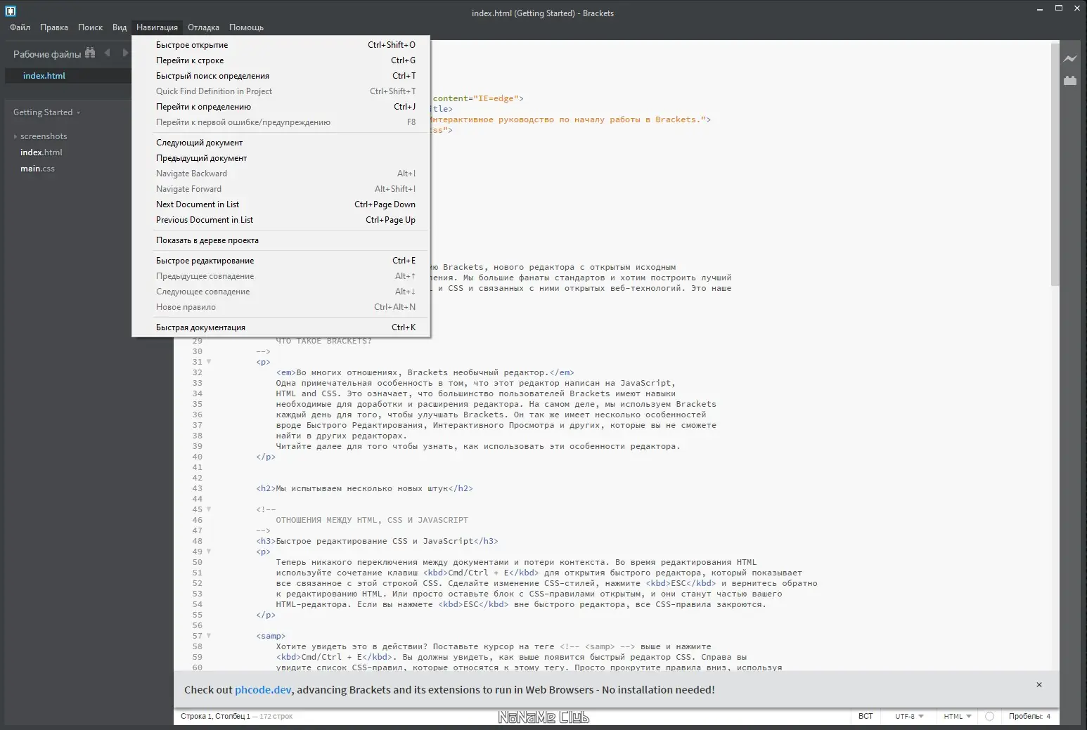 На сегодняшний день среда разработки локализована на 17 языков, включая русский, и доступна для бесплатного скачивания через торрент или официальные источники. Версии совместимы с Windows 7, 8/8.1, 10 и 11 на платформах x32 и x64 Bit. Работая с Brackets, вы Put the in формулы, Put the verbs в правильное место, открываете проект в удобной среде, открываете put the в строке поиска файл или функцию, что повышает эффективность работы в любой задаче по веб-разработке.