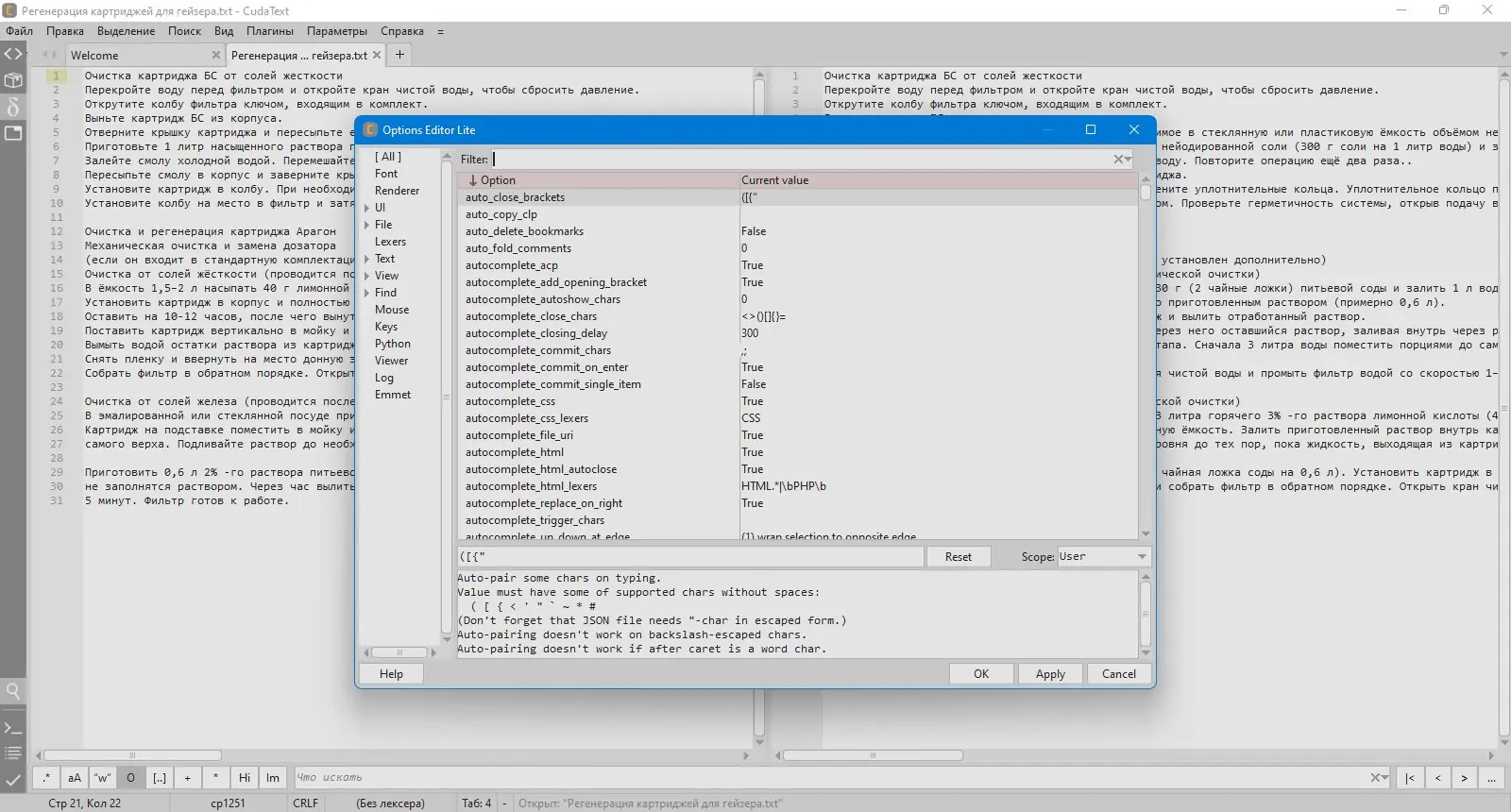 CudaText — это бесплатный мультиплатформенный редактор текста, специально предназначенный для написания и редактирования кода. Обладает богатым функционалом, включая подсветку синтаксиса, работу с несколькими файлами и группами проектов, расширяемость через плагины на языке Python и настройку горячих клавиш. Поддерживает работу с более чем полуторой сотни языков программирования, обеспечивает возможность одновременной работы с несколькими документами разных типов разметки и предоставляет удобные инструменты для повышения продуктивности разработчика.
