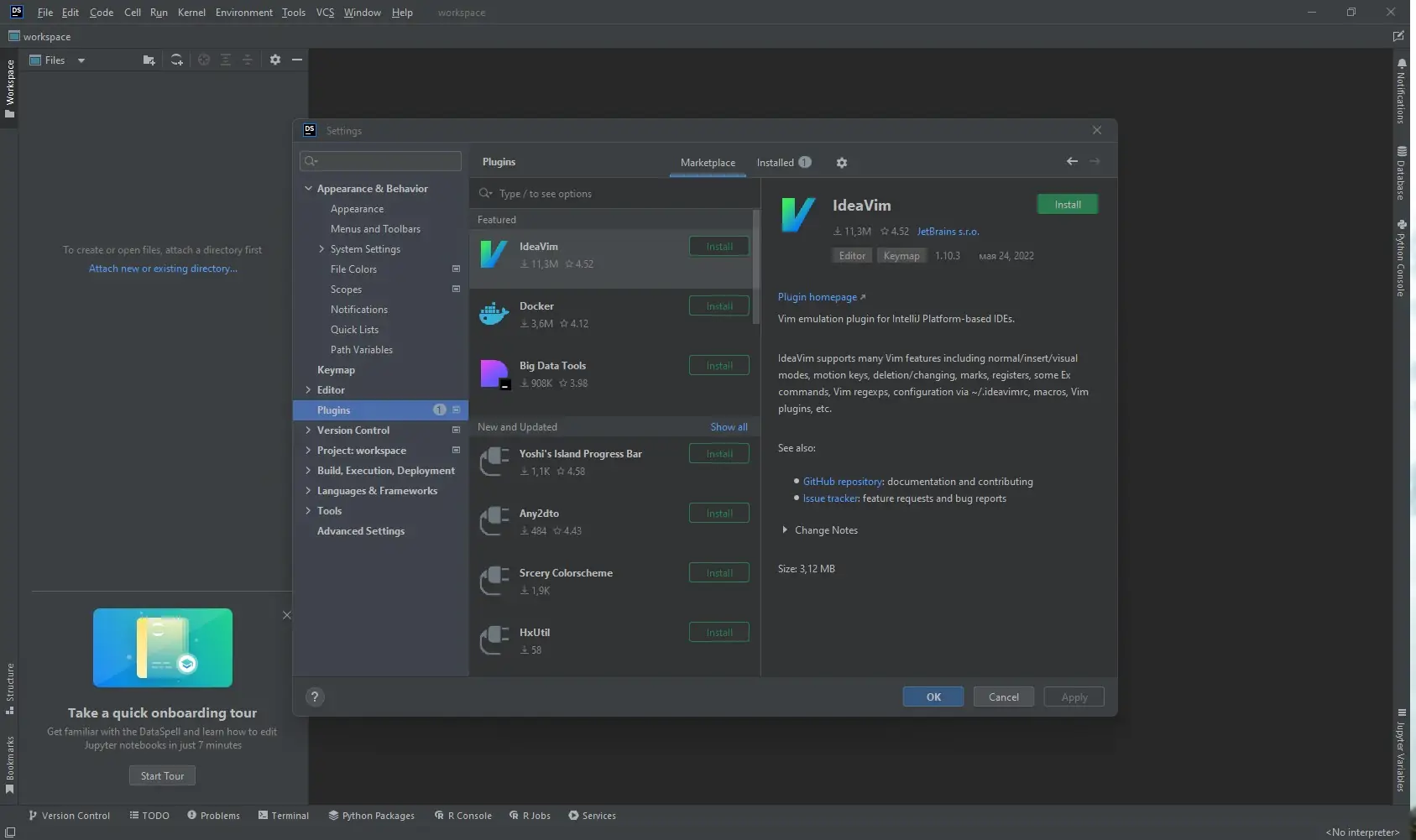 - Большой выбор плагинов для расширения функциональности, включая работу с Docker, настройку внешнего вида и интеграцию с системами контроля версий.
