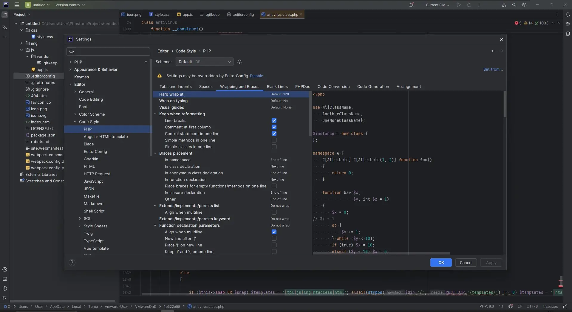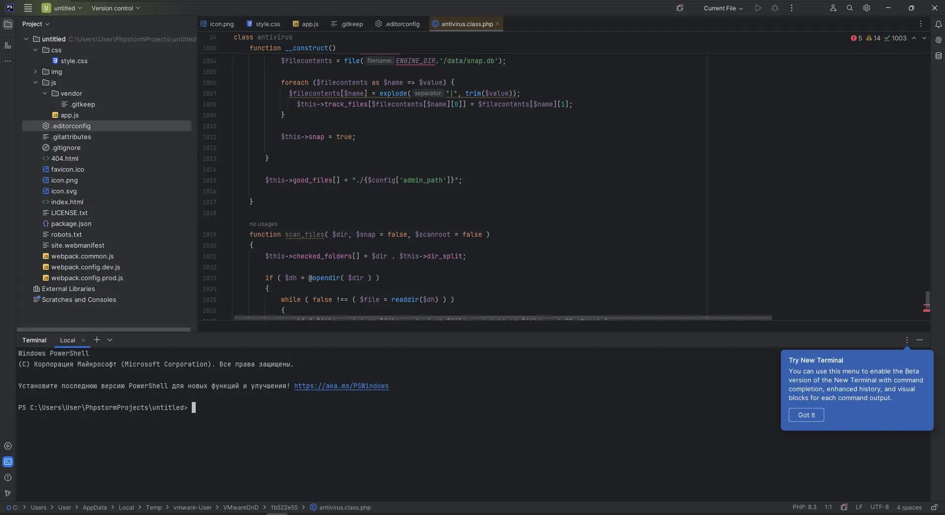 - Интеллектуальный редактор PHP с автодополнением и подсветкой синтаксиса
