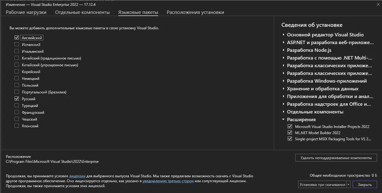 - Выберите необходимые компоненты и параметры установки.