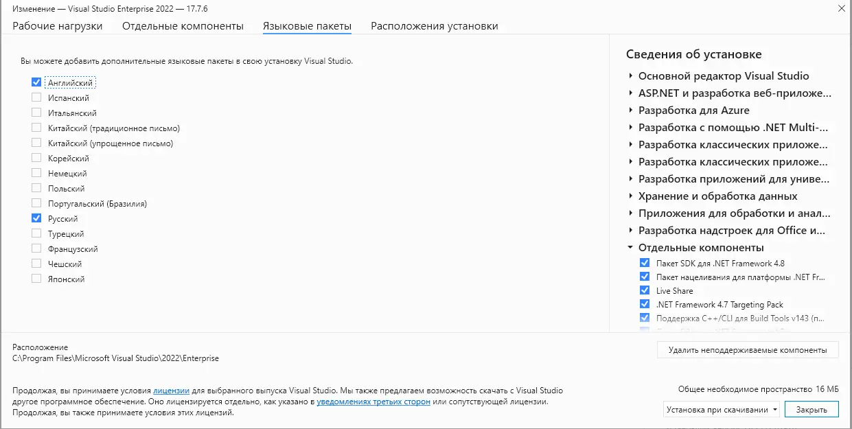 - Запустите инсталлятор и следуйте указаниям мастера установки, выбрав необходимые компоненты и путь для установки.