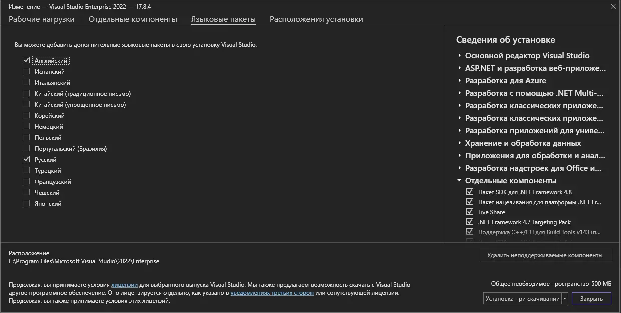 - Относительно продолжительный процесс установки при выборе большего набора компонентов