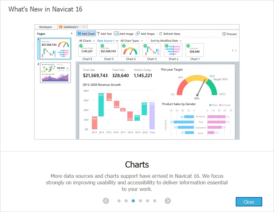 Navicat Premium — это комплексное решение для управления и администрирования множества популярных систем управления базами данных. Эта мощная программа позволяет одновременно подключаться к базам данных MySQL, Redis, MariaDB, MongoDB, SQL Server, Oracle, PostgreSQL и SQLite, обеспечивая удобство работы в одном интерфейсе. Кроме того, Navicat Premium поддерживает облачные платформы, такие как Amazon RDS, Amazon Aurora, Microsoft Azure, Google Cloud и другие, что делает её незаменимым инструментом для современных разработчиков и администраторов баз данных.
