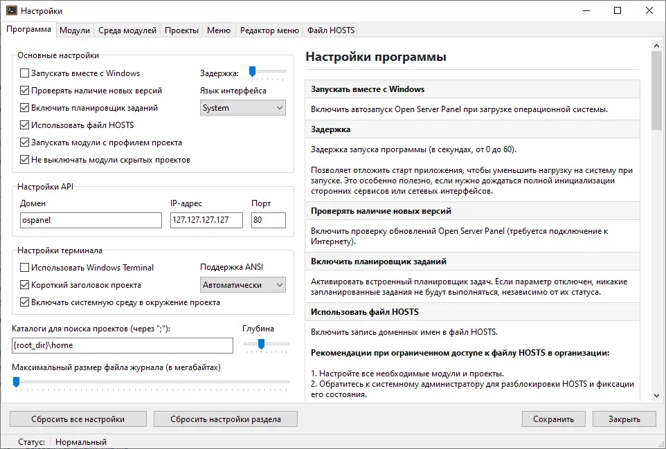 Open Server Panel — это современная портативная платформа для веб-разработки под Windows, предоставляющая расширенные возможности по сравнению с предыдущими версиями. Это комплексное решение, включающее все необходимые инструменты для создания, тестирования и отладки веб-проектов на локальном компьютере. Благодаря своей простоте и функциональности, OSPanel широко используется как начинающими, так и опытными веб-мастерами для быстрого создания рабочего окружения и изучения веб-технологий без необходимости сложной установки большого количества программных компонентов.