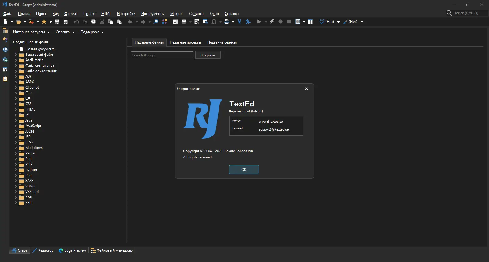 RJ TextEd — мощный и универсальный текстовый редактор с расширенным функционалом для профессиональных разработчиков и веб-мастеров. Обеспечивает поддержку различных кодировок и подсветку синтаксиса, что делает его идеальным средством для работы с кодом и HTML-версткой.