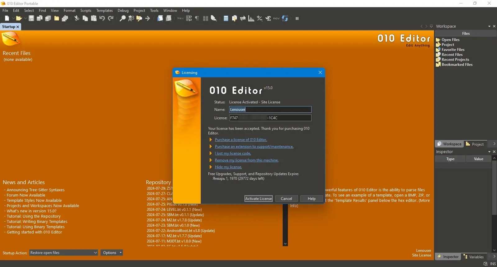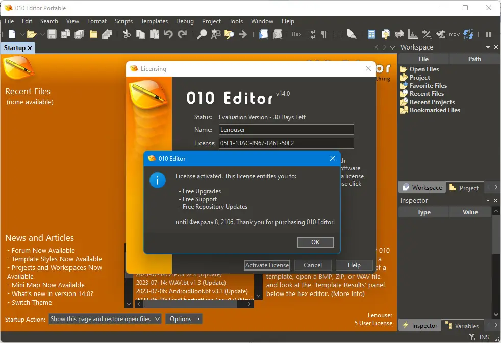 - Скопируйте полученный ключ в буфер обмена и вставьте его в соответствующее окно при первом запуске SweetScape 010 Editor.