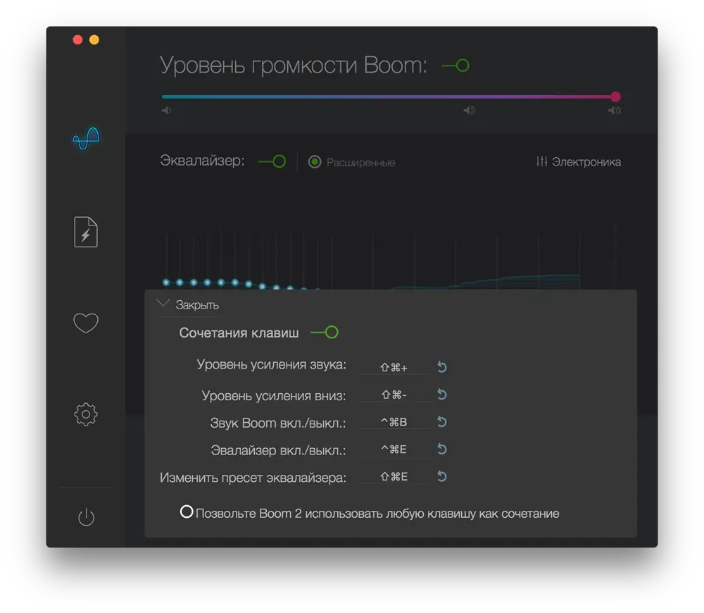 Boom обеспечивает значительно более качественное звучание на MacBook и MacBook Air, превосходя штатные акустические системы устройств. Благодаря настраиваемому эквалайзеру и современному интерфейсу, приложение позволяет добиться идеального звучания в любых приложениях. Оно автоматически калибруется под конфигурацию аудиотракта вашего компьютера, что гарантирует оптимальные результаты. Особенно рекомендуется обладателям Mac, сталкивающимся с недостаточной громкостью и качеством звука в стандартных условиях.