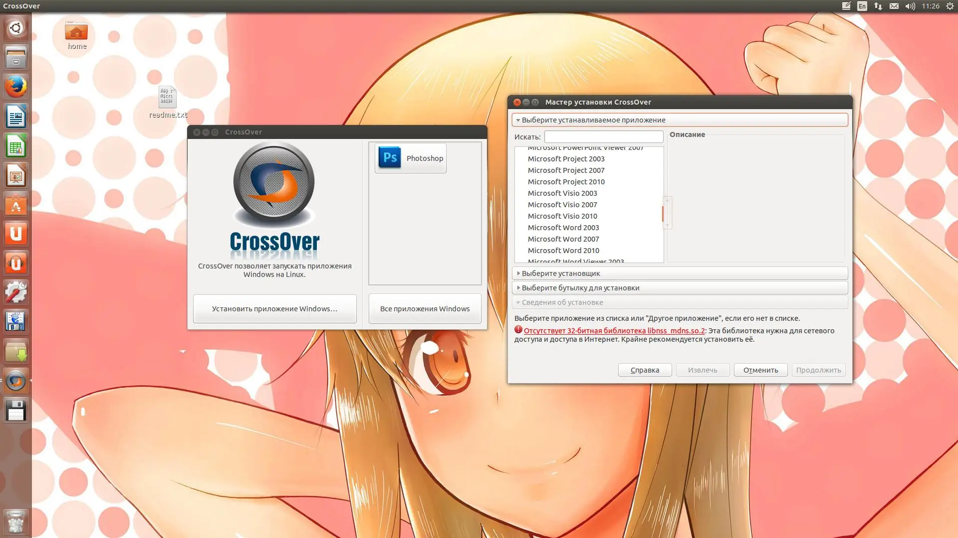 - Перенести файлы из папки Crack в системную директорию /opt/cxoffice/lib/wine/ с заменой существующих файлов
