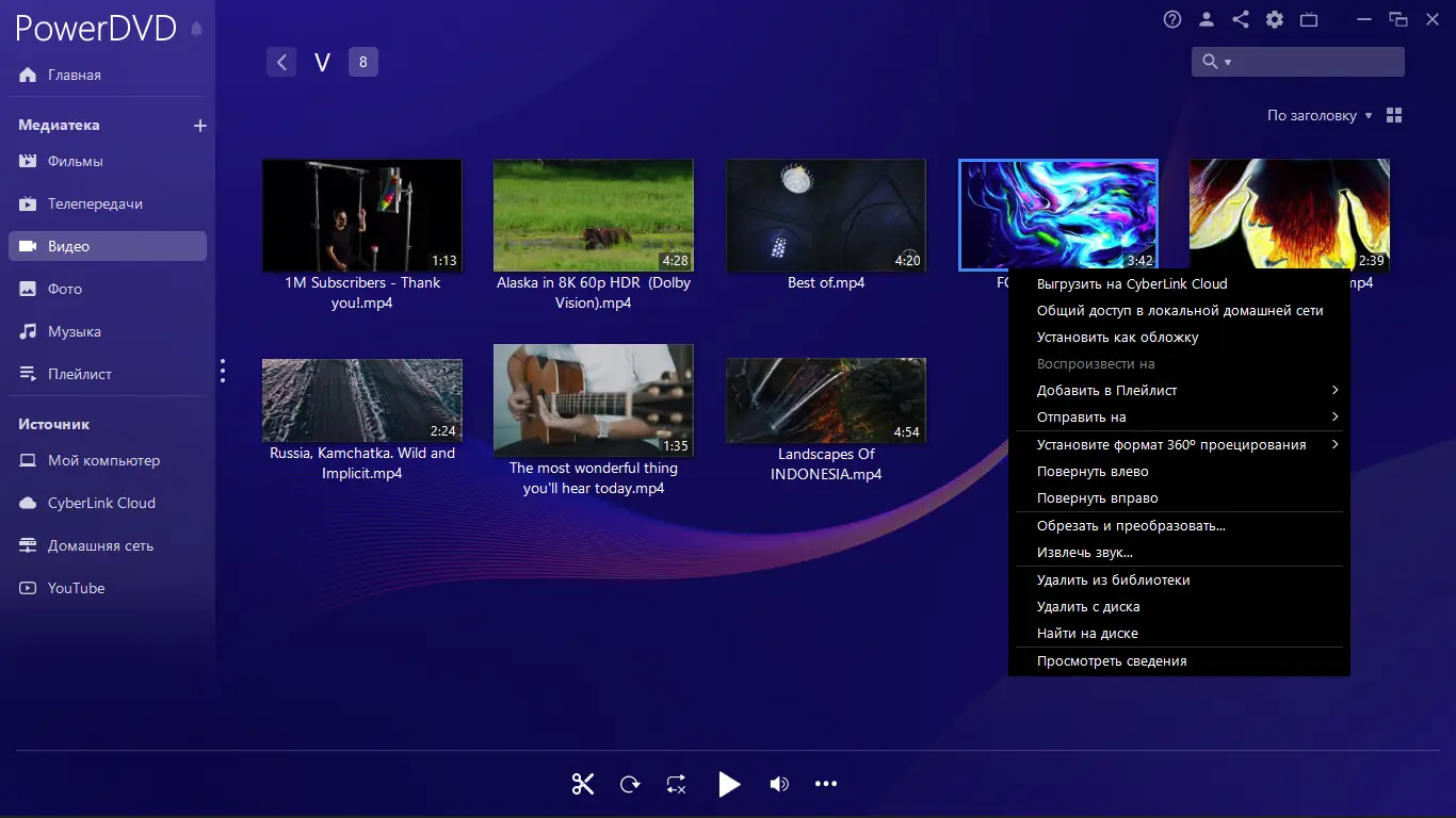 Благодаря функциям масштабирования, установки маркеров, сохранения момента остановки и возможности быстрого поиска сцен комфортное просматривание фильмов становится максимально удобным. Программа также позволяет переносить медиаконтент по беспроводной домашней сети с мобильных устройств на ПК. Все это делает PowerDVD надежным решением для домашнего кинотеатра и мультимедийных развлечений.