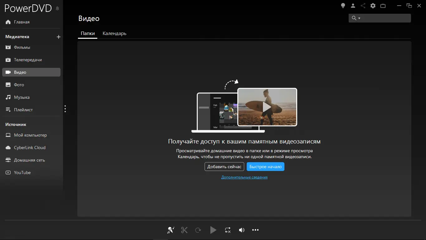 CyberLink PowerDVD — мощный мультимедийный проигрыватель, позволяющий просматривать DVD-Видео, Video-CD и широкий спектр современных видеоформатов высокого разрешения. Благодаря высокому качеству изображения и удобному интерфейсу с возможностью персонализации скинов, программа обеспечивает комфортное воспроизведение фильмов и мультимедиа контента. Включенные функции захвата кадров, регулировки параметров отображения и создание личных каталогов делают просмотр и управление медиафайлами максимально удобным. Интеграция с сервисом MoovieLive позволяет обмениваться отзывами и делиться коллекциями с другими пользователями.