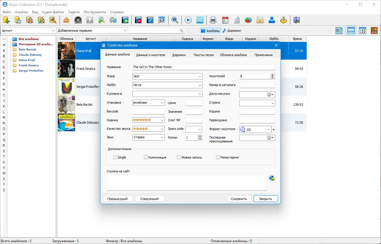 Программа для создания и управления собственной музыкальной коллекцией на компьютере, позволяющая удобно редактировать сведения о композициях и получать доступ к ним в любой момент.