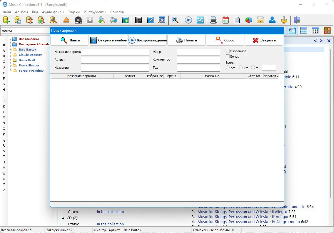 Music Collection — это мощный инструмент для любителей музыки и профессиональных коллекционеров. Он сочетает в себе богатый функционал и удобство использования, позволяя полностью контролировать свои музыкальные файлы и информацию о них.