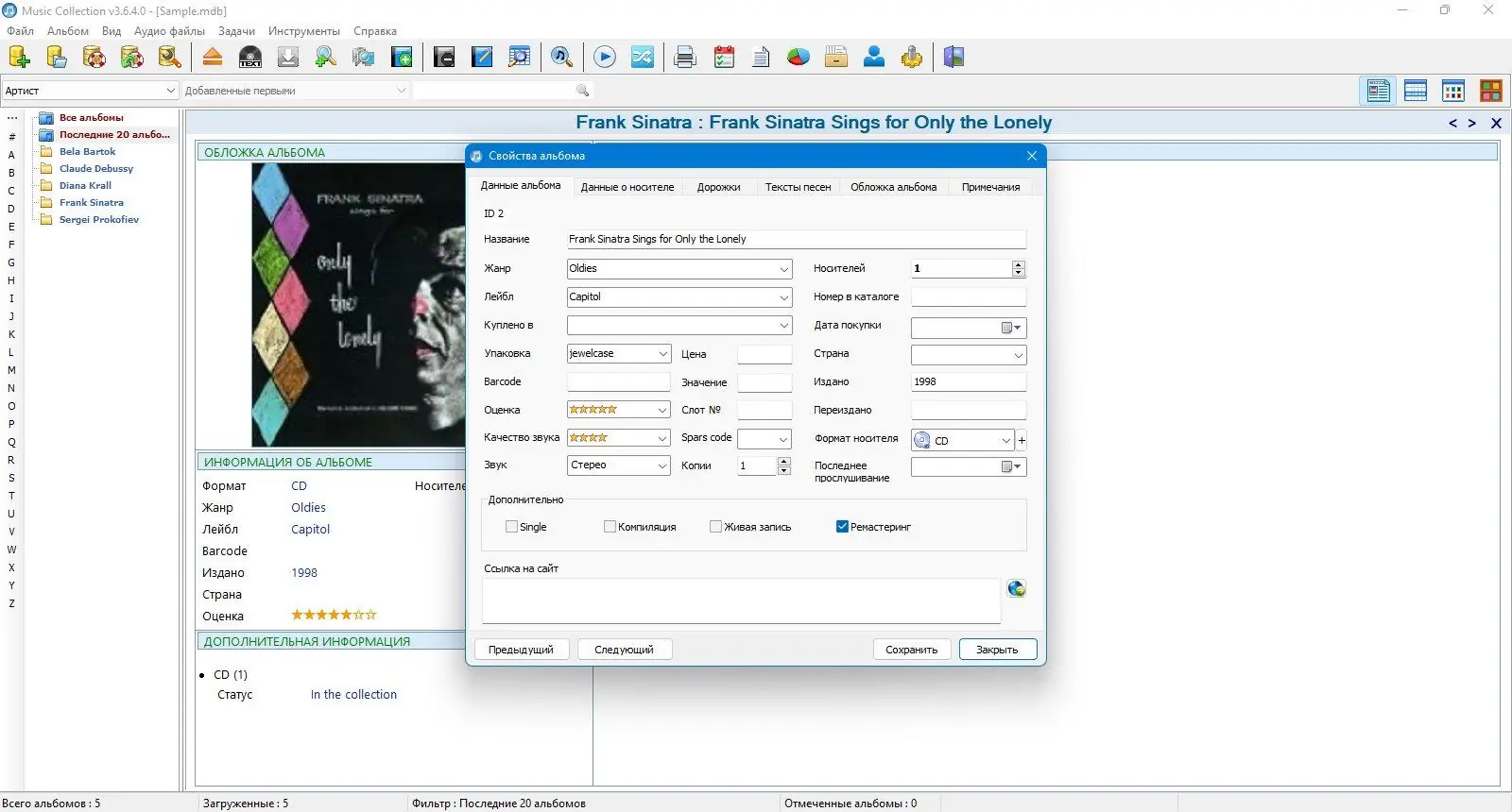 Music Collection — это универсальная программа для создания и управления собственной музыкальной коллекцией на компьютере, идеально подходящая для тех, кто ценит порядок и удобство в работе с музыкой.