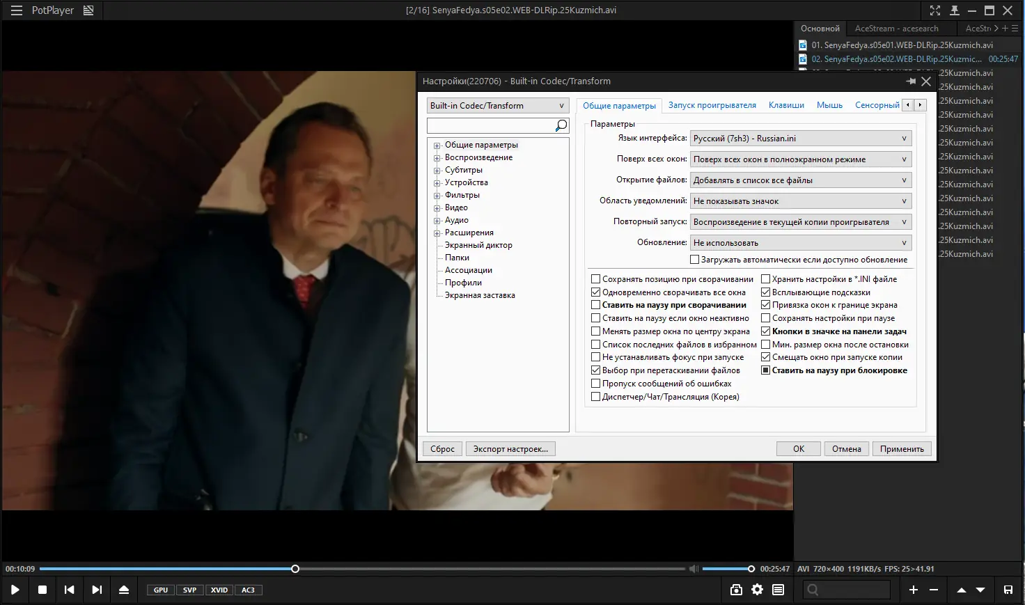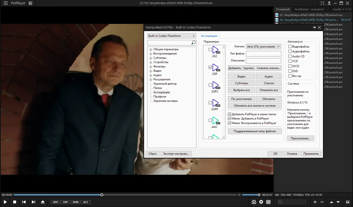 - Настройте параметры интерфейса и ассоциации файлов, указав предпочтительные типы видео и аудио.