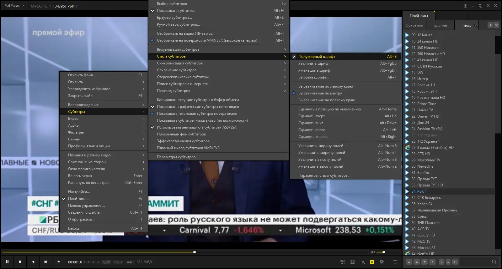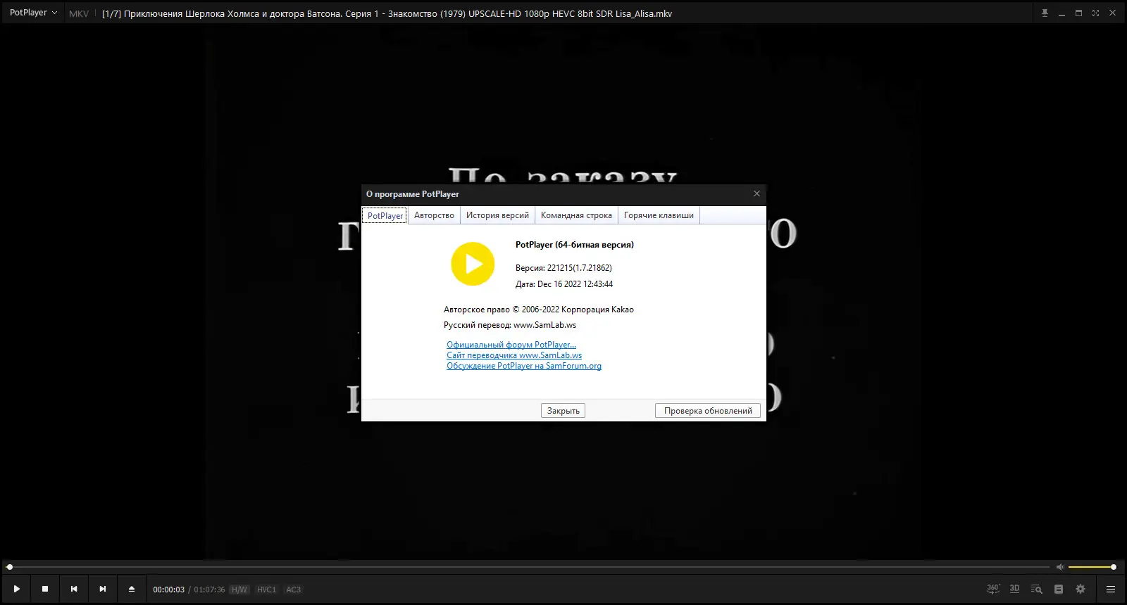 PotPlayer — мультимедийный плеер, разработанный создателями KMPlayer. Он отличается богатым функционалом, включающим поддержку всех популярных видео и аудиоформатов, встроенные видеокодеки DXVA и современный дизайн. Плеер удобно настраивается, позволяет изменять горячие клавиши, записывать звук в отдельный файл, подключать DSP-плагины, показывать субтитры, а также включает удобные инструменты для масштабирования и позиционирования изображения. Большое количество настроек помогает значительно улучшить качество отображения видео и звука, делая комфортным просмотр даже недокачанных или битых файлов.