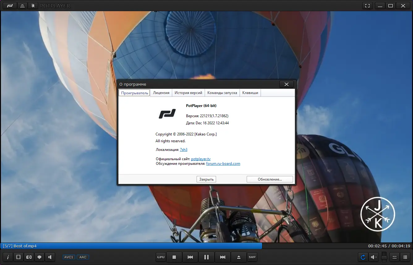 PotPlayer — мультимедийный плеер от создателей KMPlayer, обладающий высоким качеством воспроизведения и поддержкой всех современных форматов. Он содержит встроенные видеокодеки DXVA и обеспечивает стабильную работу на различных системах Windows 7, 8/8.1, 10, 11, как в 32-, так и в 64-разрядных версиях. У плеера современный дизайн, удобные инструменты настройки, возможность назначения горячих клавиш, а также воспроизведение недокачанных файлов и подключение дополнительных плагинов для расширения функционала.