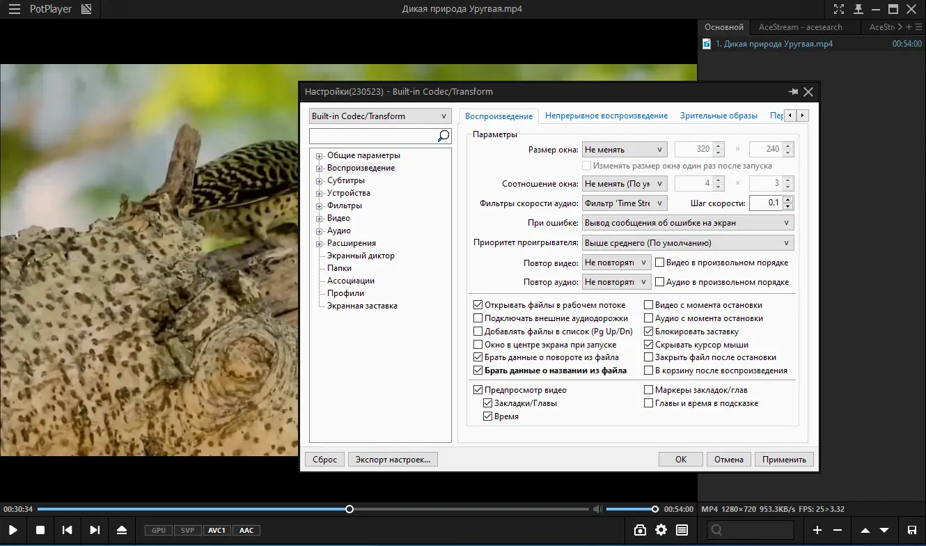 - Поддержка аппаратных видеокодеков DXVA, QuickSync и CUDA