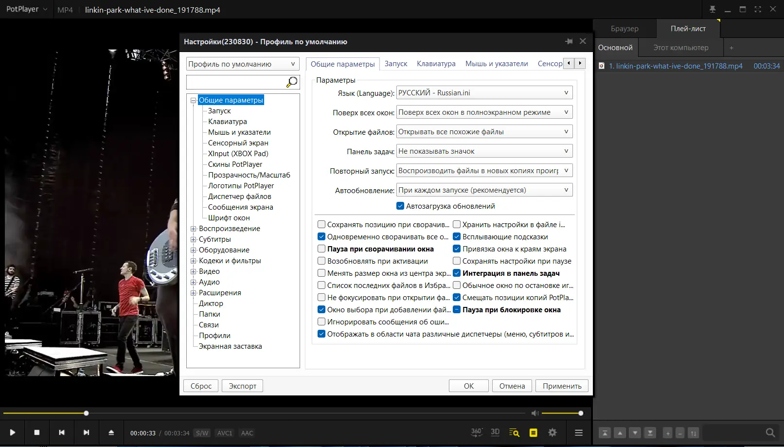 - При необходимости настроить горячие клавиши и параметры воспроизведения.