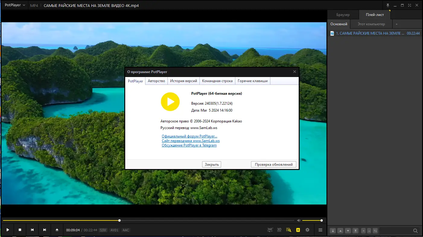 Данный мультимедийный плеер, созданный разработчиками KMPlayer, обладает высоким качеством воспроизведения как видео, так и аудио. Он поддерживает все современные форматы, оснащён встроенными видеокодеками DXVA, что обеспечивает комфортную работу на различных системах, включая 32 и 64-разрядные Windows 7, 8/8.1, 10 и 11. Программа отличается современным дизайном, богатым набором настроек, возможностью назначения горячих клавиш и подключением DSP-плагинов. Она подходит как для профессиональной работы, так и для повседневного просмотра мультимедиа, обеспечивая стабильную работу даже с поврежденными файлами и недокачанным контентом.