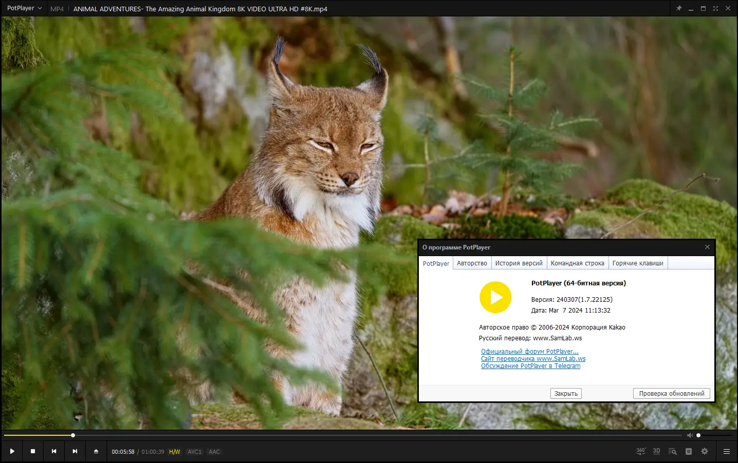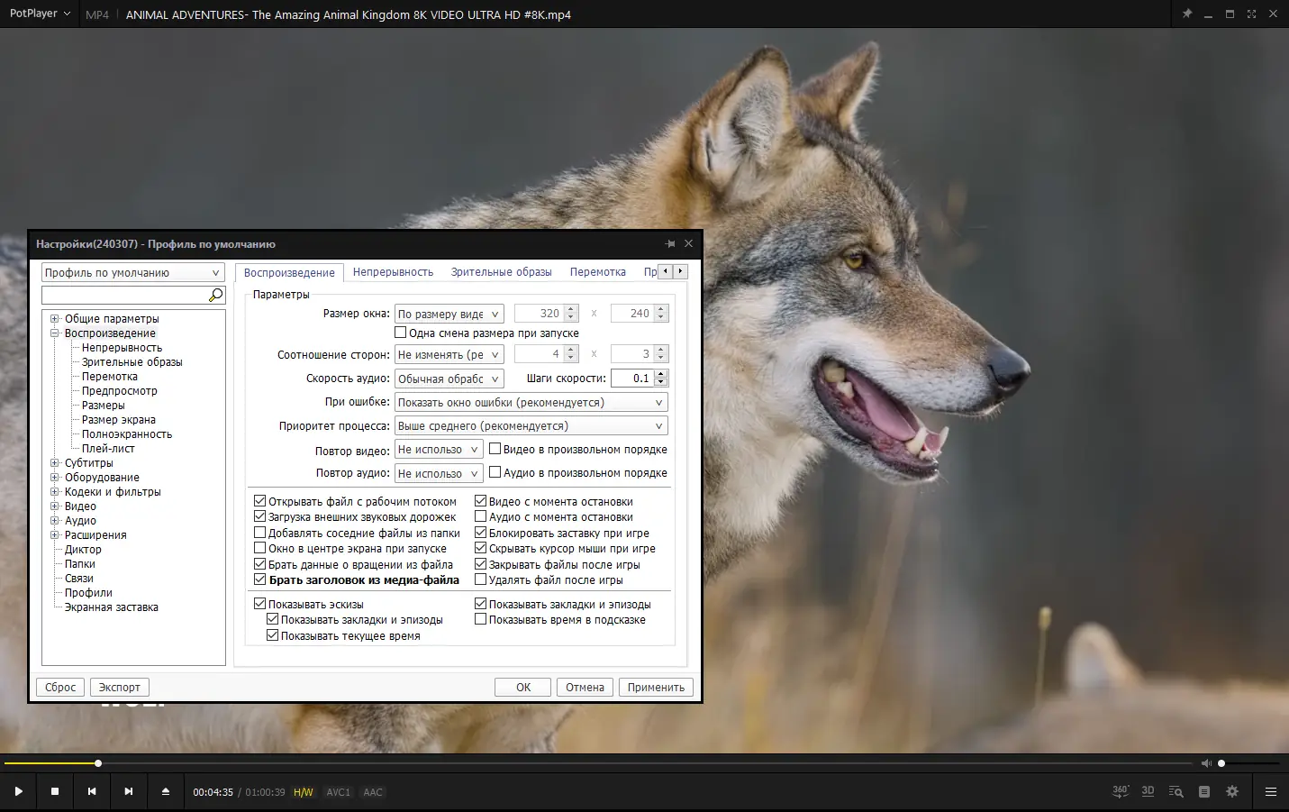 Этот бесплатный мультимедийный проигрыватель обладает всеми функциями и усовершенствованиями, основанными на оригинальном KMPlayer. Он поддерживает все современные видео и аудио форматы, оснащён встроенными DXVA видео кодеками для плавного воспроизведения, а также предлагает высокое качество звука и изображения. Современный дизайн делает программу удобной для настройки и использования, а возможность назначать горячие клавиши и подключать DSP плагины позволяет адаптировать работу под индивидуальные предпочтения. Встроенные инструменты для записи звука, показы субтитров, визуализация при воспроизведении аудио — всё это делает проигрыватель универсальным решением для прослушивания и просмотра мультимедиа файлов.