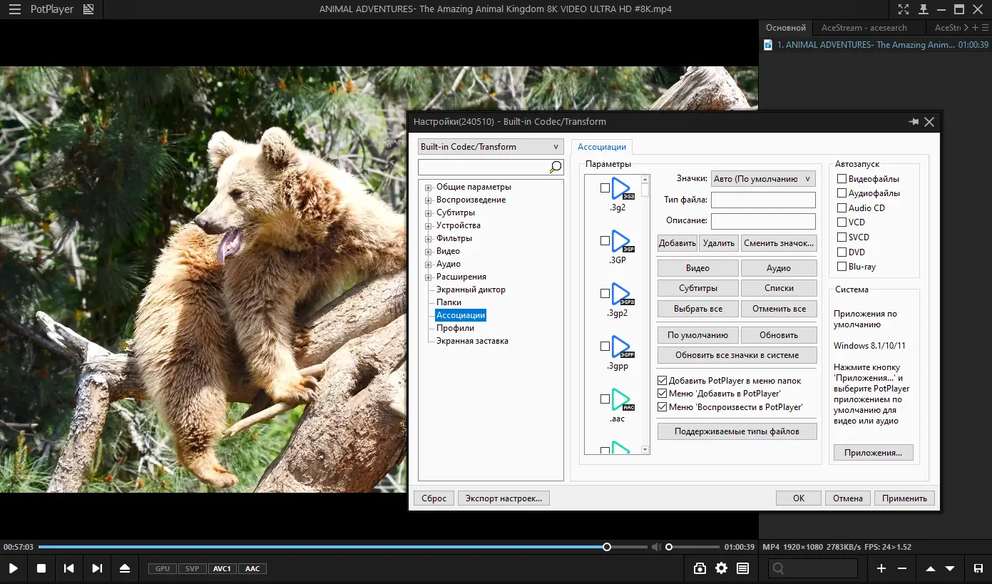 PotPlayer — это современный мультимедийный плеер, разработанный создателями KMPlayer. Он поддерживает все современные видео- и аудиоформаты, обладает высоким качеством воспроизведения и широкими настройками для оптимизации просмотра. Встроенные видеокодеки DXVA позволяют использовать аппаратное ускорение при воспроизведении. Программа отличается интуитивным дизайном, удобством в настройке и возможностью назначать горячие клавиши, а также записывать звук в отдельный файл и подключать DSP-плагины. Возможности по работе с субтитрами, визуализацией при прослушивании музыки и разнообразными настройками делают PotPlayer универсальным инструментом для просмотра мультимедиа контента. Другой важный аспект — поддержка 32- и 64-разрядных Windows 7, 8/8.1, 10 и 11, что позволяет адаптировать программу под любые системы.