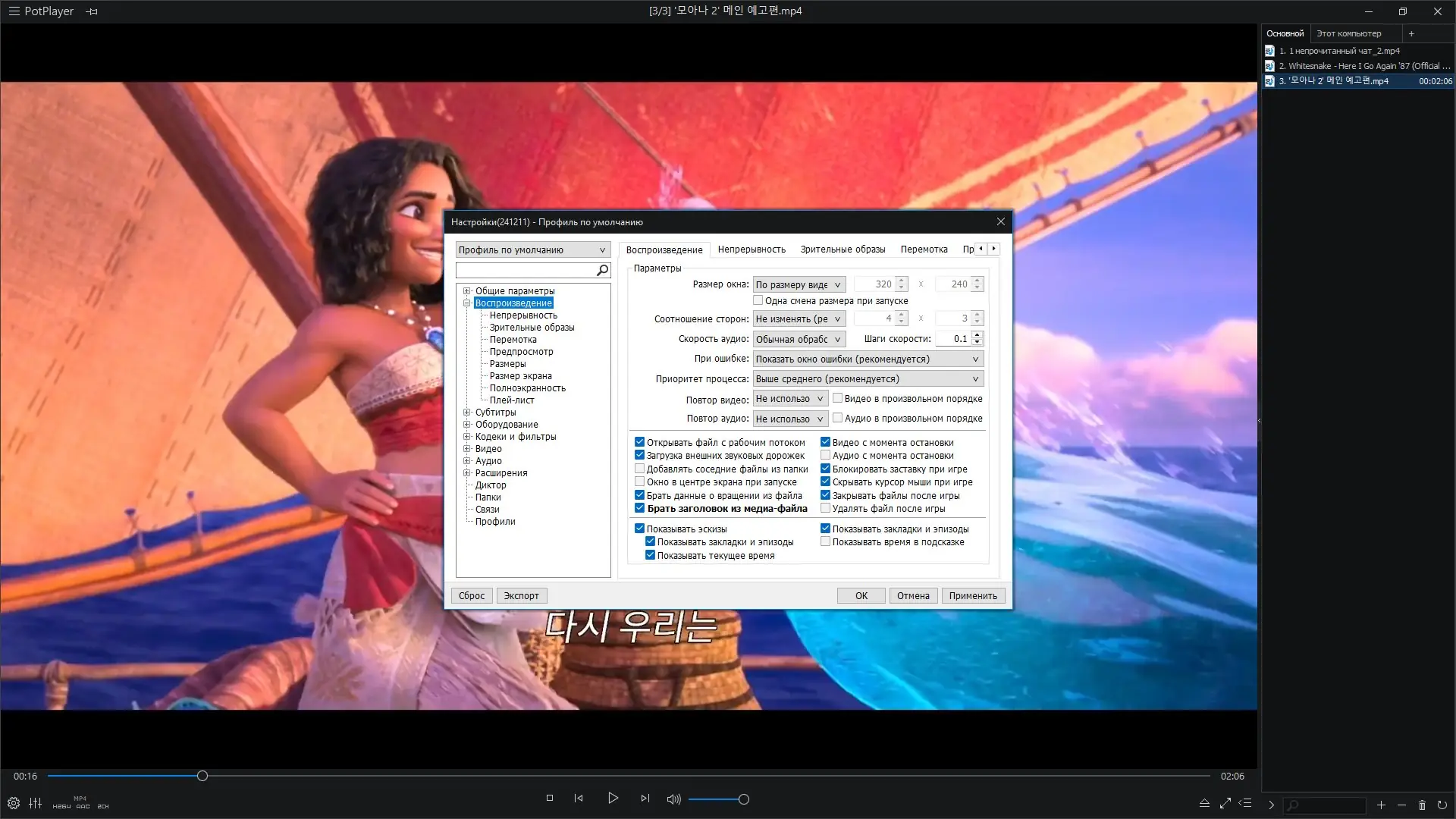 ДауМ ПотПлейер — это современный мультимедийный плеер от создателей KMPlayer, отличающийся высокой производительностью и широкой функциональностью. Он поддерживает все современные видео- и аудиоформаты, содержит встроенные видеокодеки DXVA для аппаратного ускорения, что обеспечивает плавное и качественное воспроизведение. Программа обладает современным дизайном, простым интерфейсом и множеством опций для настройки под предпочтения пользователя. Вы можете назначать горячие клавиши, записывать звук в отдельный файл, подключать DSP-плагины, показывать субтитры и использовать визуализацию при проигрывании аудиофайлов. Большое количество настроек позволяет значительно улучшить качество воспроизведения и адаптировать плеер под любые требования.