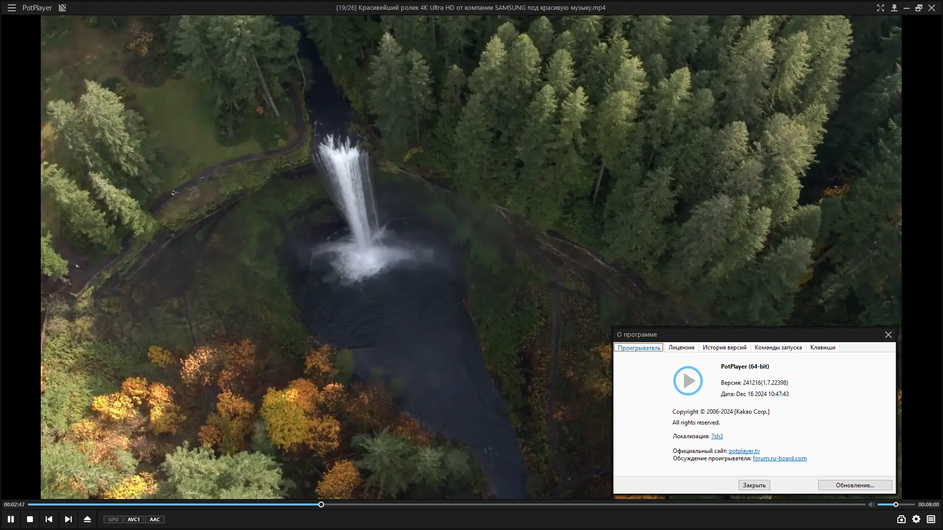 PotPlayer — это мультимедийный плеер, разработанный авторами KMPlayer с акцентом на качество воспроизведения и многофункциональность. Он оснащён встроенными видеокодеками DXVA, что позволяет существенно снизить нагрузку на систему при воспроизведении, а современный дизайн интерфейса обеспечивает удобство и легкость использования. Плеер обладает широкими возможностями по настройке горячих клавиш, подключению DSP-плагинов и воспроизведению субтитров с эффектами. Помимо этого, программа позволяет записывать звук в отдельные файлы и изменять параметры изображения для достижения максимального качества и комфорта просмотра.
