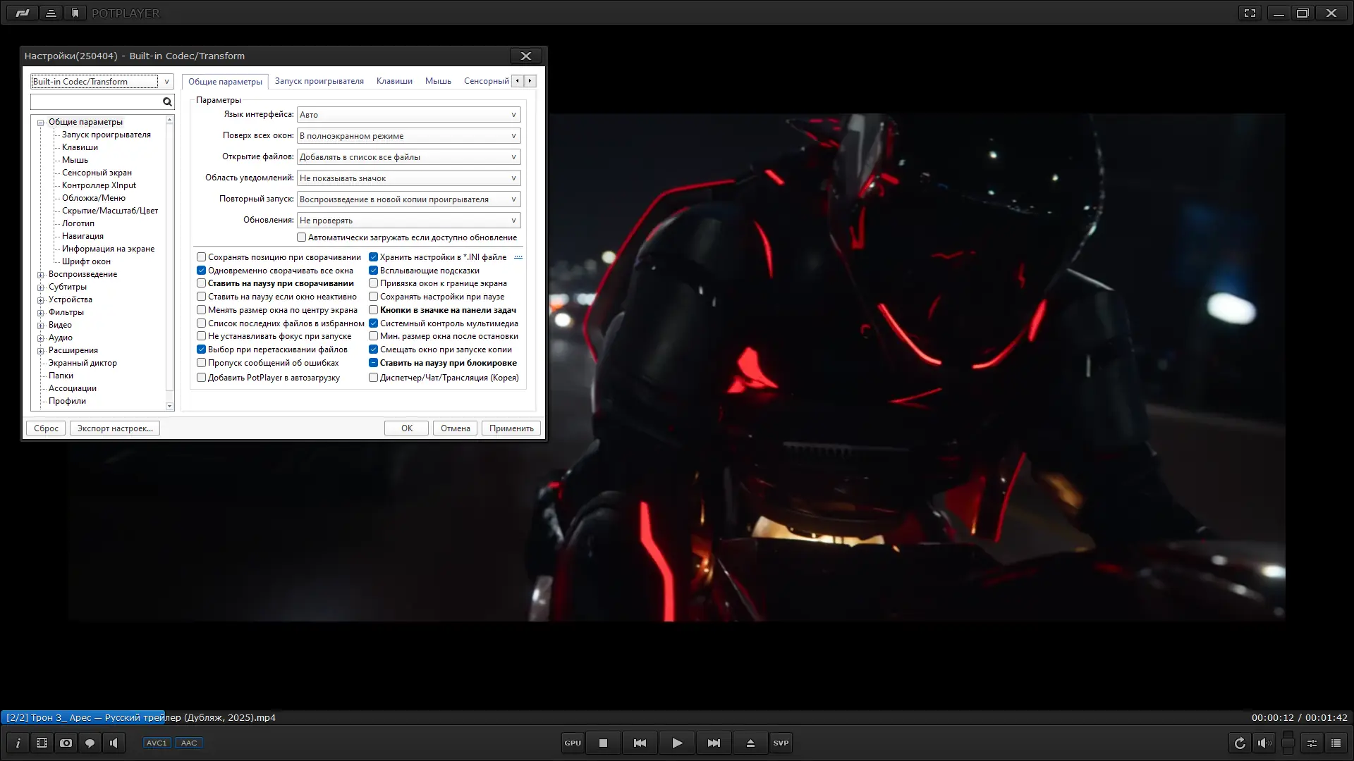 - Поддержка всех современных форматов видео и аудио