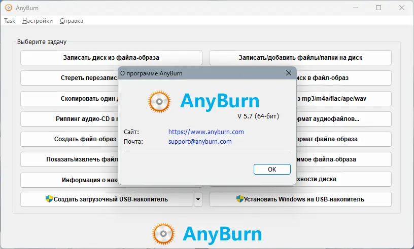 AnyBurn представляет собой компактную утилиту для работы с различными видами дисков, которая полностью бесплатна и не требует установки. Поддержка Windows 7, 8/8.1, 10 и 11 делает её универсальным решением для пользователей с разной операционной системой. Интерфейс программы разделён на удобные закладки, что позволяет быстро переключаться между задачами, такими как быстрая запись дисков, создание образов, риппинг аудио-CD и преобразование файлов. Также поддерживается работа с мультисессией и возможностью конвертирования файлов, что расширяет её функциональные возможности. Вариант portable позволяет использовать программу без установки, что удобно для мобильных пользователей или при необходимости работы с несколькими системами.