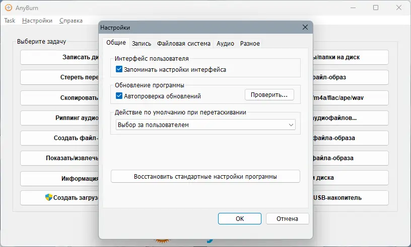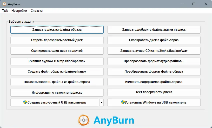 AnyBurn — это небольшая, бесплатная утилита для управления дисками CD/DVD/Blue-ray. Программа обладает интуитивно понятным интерфейсом, разделённым на закладки, что обеспечивает удобство выполнения различных операций с дисками и образами. Среди функционала — запись образов, создание резервных копий, копирование дисков, работа с аудио-CD и создание загрузочных USB-носителей. Этот универсальный инструмент служит отличной альтернативой более тяжелым и платным программам для работы с оптическими носителями.