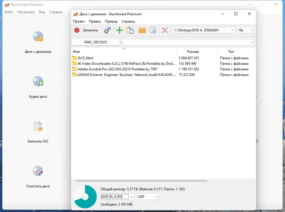 BurnAware — простая и в то же время мощная программа для записи и копирования любых дисков, включая CD, DVD, Blu-Ray и HD-DVD. Обладает широким набором функций, подходящих как для новичков, так и для опытных пользователей.